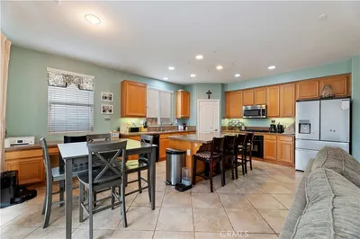 Welcome Home! Spacious 5-bedroom, 3-bath home located in a quiet, well-established neighborhood in the city of Menifee. This beautifully maintained property showcases true pride of ownership and offers a functional layout ideal for both everyday living and entertaining. Features include a 3-car garage, paid solar, and a new AC unit/heat system for energy efficiency and year-round comfort. The main level includes a generously sized bedroom and full bathroom, perfect for guests, multigenerational living, or a private home office. Upstairs, enjoy a generously sized loft that offers flexible living space for a media room, playroom, or second family room. The oversized primary suite is a true retreat, complete with a spacious sitting area and ample room to unwind. The backyard is a must see—meticulously maintained and designed for low-maintenance enjoyment. It features a covered patio, turf landscaping, 220 volt wiring to add a spa and mature fruit trees, creating a private and inviting outdoor space perfect for relaxing or entertaining. With abundant living space, thoughtful upgrades, and a peaceful Menifee location close to schools, parks, shopping, and commuter routes, this move-in-ready home offers comfort, convenience, and value all in one. A must-see!