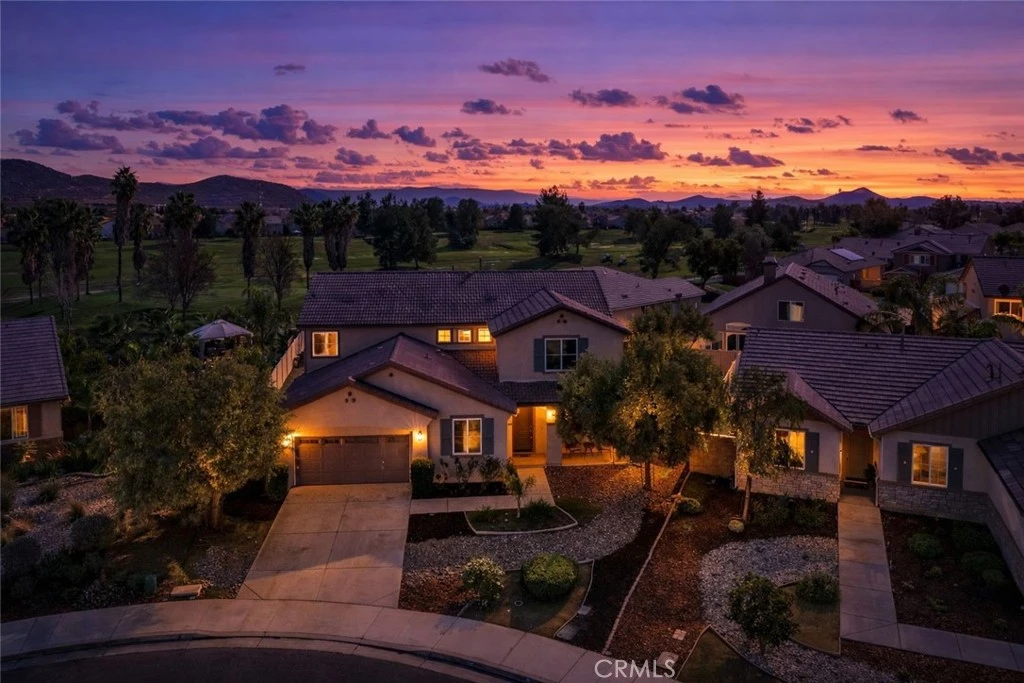 Nestled in a quiet cul-de-sac, this beautifully maintained 5-bedroom, 3-bath home with a spacious loft, offering 3,391 sq ft of comfortable and versatile living space in one of Menifee’s peaceful, family-friendly neighborhoods. Furnace and A/C were upgraded in 2025. Step inside to soaring high ceilings and an inviting open floor plan that makes the home feel bright, airy, and welcoming from the moment you enter. Multiple living areas provide flexibility for every lifestyle, including a formal living and dining room, as well as a cozy family room featuring a warm fireplace—perfect for movie nights or relaxed evenings in. The heart of the home is the large, well-appointed kitchen, complete with granite countertops, stainless steel appliances, abundant cabinetry, and a center island that makes cooking and entertaining effortless. Ideal for multi-generational living or hosting guests, the main level includes a full bedroom and bathroom, offering comfort and convenience. Head upstairs to discover a generous loft, perfect for a game room, home office, or additional gathering space. The expansive primary suite provides a true retreat with its walk-in closet, soaking tub, dual sinks, and separate shower. The backyard offers plenty of room to create your personal oasis unwind, garden, entertain, or even add a future pool—giving you endless possibilities to create your ideal outdoor space. Located close to schools, shopping, parks, and easy freeway access, this move-in ready home is perfect for families of all sizes looking for space, comfort, and convenience. **Solar is PPA to transfer to buyer**