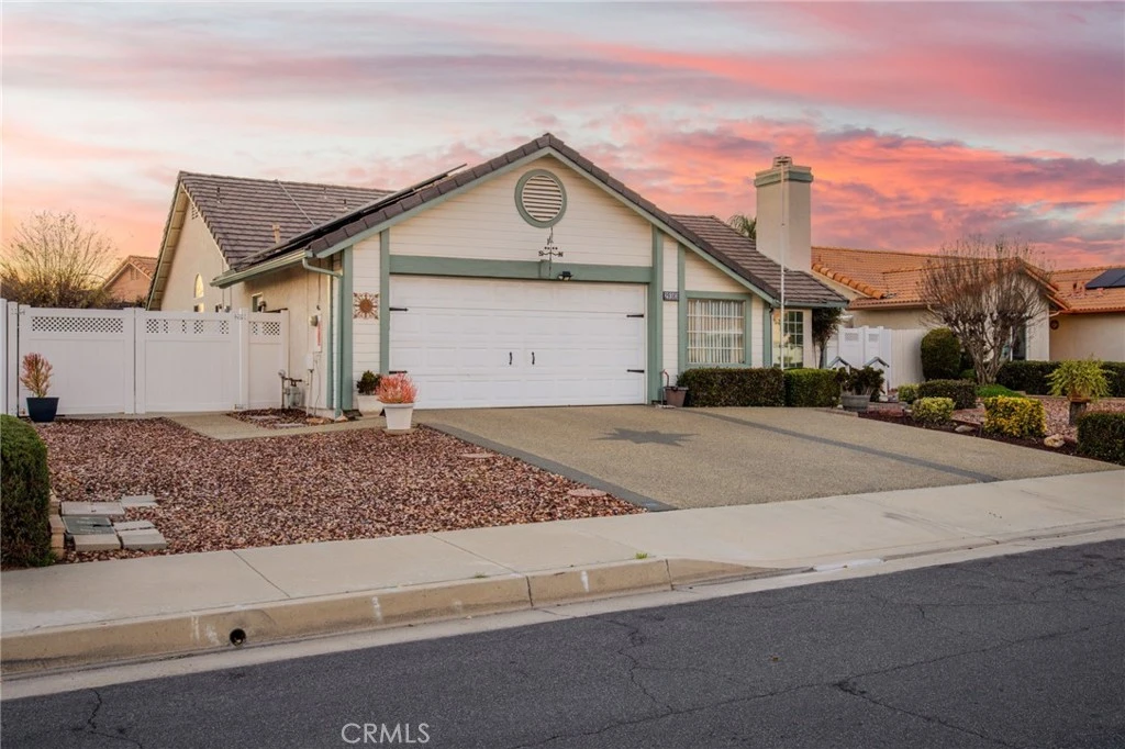 Welcome to a home that truly reflects pride of ownership from the moment you arrive. Thoughtfully updated and beautifully maintained, this residence is filled with natural light thanks to multiple skylights, enhanced by updated wood flooring and classic plantation shutters throughout. The double-door entry opens to an inviting layout where the dining area flows seamlessly into the kitchen and breakfast nook, creating an open and functional living space. Large windows frame views of the lush, well-established backyard, bringing the outdoors in and adding to the home’s warm, airy feel. While many homes in the community offer only two bedrooms, this property stands out with a highly desirable third bedroom. The spacious primary suite features an impressive walk-in closet and plenty of room to unwind. Step outside to the enclosed patio—perfect for enjoying cool evening breezes without the bugs—while the covered patio provides shade for daytime relaxation and entertaining. The exterior is just as impressive, with beautifully hardscaped front landscaping that offers a serene setting and strong curb appeal. The side yard provides ample space for RV storage, and the oversized garage includes a dedicated workshop area without sacrificing full two-car parking. An epoxy-finished driveway adds a tasteful, modern touch that sets this home apart. This is a standout property in a quiet 55+ neighborhood that has been lovingly cared for and thoughtfully enhanced. A rare opportunity you won’t want to miss.