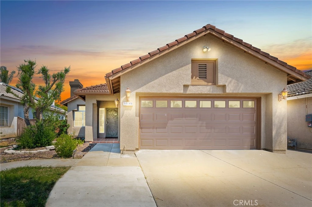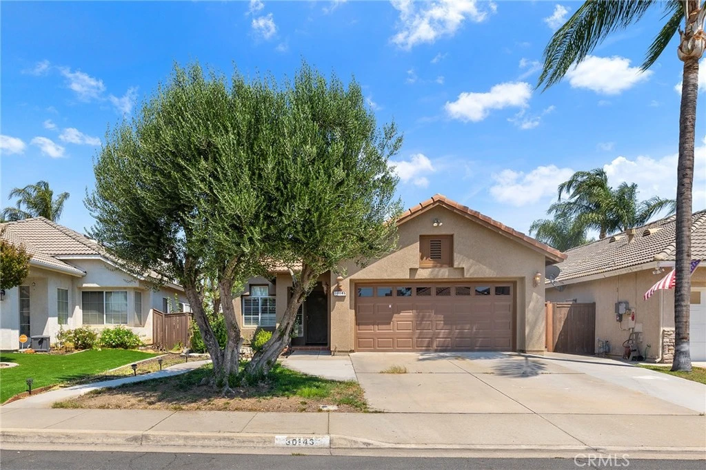 Welcome to 30146 Westlake Drive, an inviting single-story residence nestled in the heart of the Menifee Lakes community. With 2 bedrooms, 2 bathrooms, and approximately 1,255 square feet of thoughtfully designed living space, this home blends comfort, style, and low-maintenance living. As you step inside, you’ll be greeted by vaulted ceilings and an open-concept layout that creates an airy, light-filled atmosphere. The living area features a cozy fireplace and tasteful wood-laminate flooring throughout—no carpet in sight. Plantation shutters and generous windows enhance the home’s brightness and warmth. The kitchen has been tastefully remodeled with quartz countertops, crisp white cabinetry, and a custom backsplash. A garden window above the sink provides a pleasant view of the backyard, and the adjacent dining area flows naturally for ease of entertaining. Both bedrooms are located on the main level, offering privacy and accessibility. The master suite provides a serene retreat, while the secondary bedroom and adjacent full bath are ideal for guests or flexible use. Step outside to a well-proportioned backyard with lawn space, shaded by an alum-wood patio cover complete with ceiling fans—an excellent outdoor extension of the living area. And because this address is just one block from the Menifee Lakes, you’ll enjoy the opportunity for evening strolls along the water and peaceful community views. Other highlights include a two-car attached garage, newer air conditioning, new landscaping and sod, and a location within a neighborhood offering low taxes and modest HOA dues. Discover the perfect balance of charm, convenience, and lakeside community living at 30146 Westlake Drive. Schedule your private tour today and imagine calling this place home.