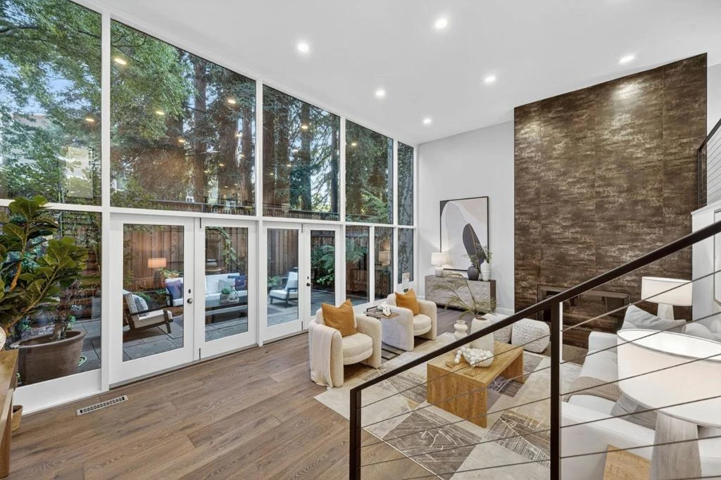 Welcome home to this impressive single family home nestled in Menlo Park neighboring Atherton! A generous open floor plan offers a perfect blend of comfort & functionality w/ soaring ceilings w/ floor to ceiling windows & doors that overlook lush redwood trees that create a sense of indoor/outdoor living. The heart of the home is a very spacious & well-appointed chefs kitchen complimented w/ stainless steel appliances w/ a 6-burner gas stove, built-in oven, wine cooler, tons of custom cabinetry, & quartz countertops w/ a breakfast bar that seamlessly integrates w/ the family room. Updated bathrooms, imported fixtures & tiles, engineered hardwood floors, double pane windows, custom railings w/ stainless steel cable railings, custom skylights, built-in speakers, central air conditioning, storage galore, a 2 car side-by-side garage, & even a community pool w/ a spacious grass area. Located within a highly desirable school district, Stanford Shopping Center, Santa Cruz Avenue, Caltrain, beautiful parks, & an abundance of stores & eateries. This one is not to miss!