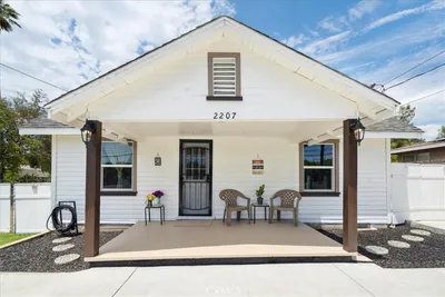 Welcome to a beautifully renovated gem, blending modern elegance with timeless charm. This stunning single-family home features a brand new roof, has been re-piped, re-wired, and has a newly upgraded electrical panel, ensuring peace of mind for years to come. As you approach, you're greeted by a newly landscaped front yard with a mature shade tree. Inside the bright living room boasts expansive windows, modern luxury vinyl plank floors, and a charming stone fireplace. The kitchen is adorned with white shaker cabinets, quartz countertops, and new stainless steel appliances. In the main house you will find 2 bedrooms with ample natural light and generous closet space. Attached to the garage is where you will find the additional living space that can be used as a bedroom. The expansive backyard is a blank canvas awaiting your personal touch, with a detached garage and oversized driveway for ample parking and storage. Situated near the border of Redlands, this property offers convenient access to local amenities, schools, and recreational areas. Don't miss the opportunity to make this place your home!