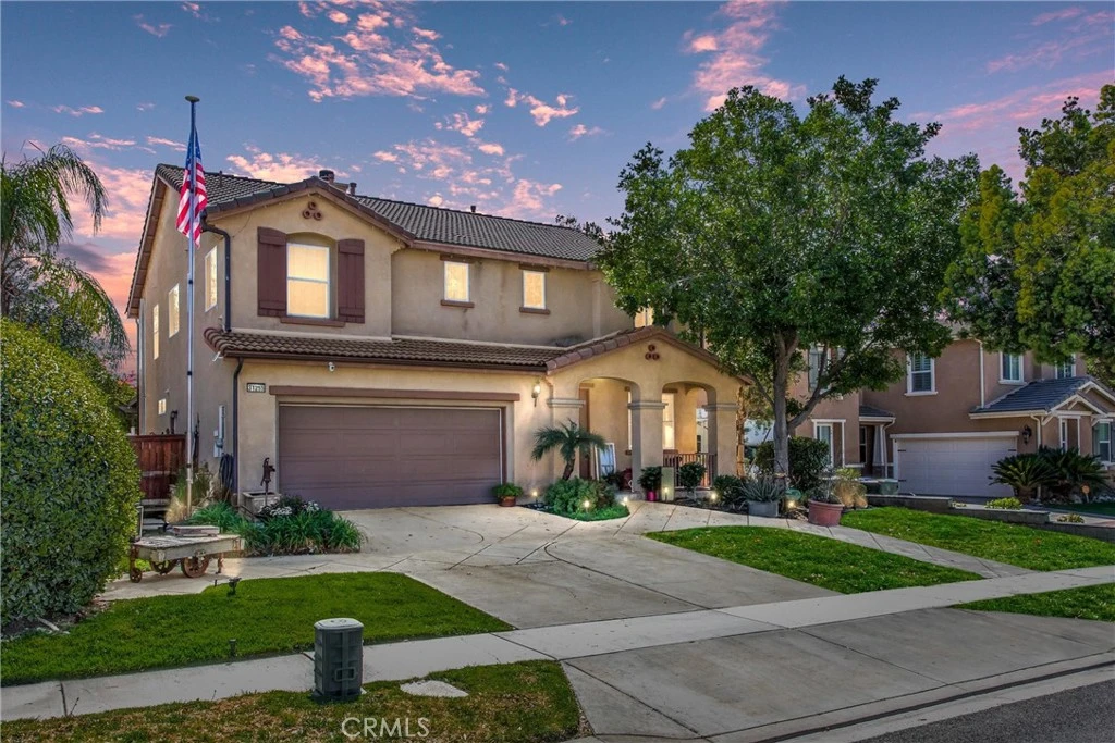 LARGE family residence in a quiet, well-established neighborhood. NEW STAINLESS APPLIANCES AND WASHER/DRYER INCLUDED. No HOA. This home offers an open floor plan that was a former model of Ryland Homes in Mentone. The property features 4 bedrooms (tax roll says 3), 2.50 baths, large upstairs loft with separate office space. The downstairs and primary have custom shutters. The kitchen is open to the family room and boasts white tile countertops with granite. The downstairs room has had a closet installed and could be 4th bedroom. It has an island bar for impromptu meals or buffet service. The laundry and garage are conveniently located to the kitchen. Sellers have included a new washer and dryer. The open family room with a fireplace will be the center of your entertaining. Off the family room is the 4th bedroom with an adjoining bathroom. Home has full surround sound throughout. As you reach the top of the stairs you are welcomed into the large loft area with extra storage cabinets and a cozy work station or reading area. The primary bedroom is a suite retreat! The in-suite bath/dressing area offers a relaxing haven. It is inviting during the daytime as it is after dark... There are two additional bedrooms upstairs. The garage is oversized for two cars and work area. Charming backyard with covered patio including fans, an above ground spa, and mature landscaping. Close to shopping, Redlands East Valley High School, University of Redlands, and the downtown historic district and restaurants.