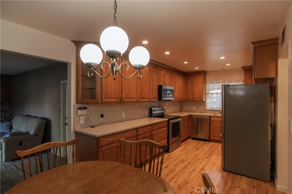Charming 3-Bed, 2-Bath Home Tucked Away on a Quiet Cul-de-Sac offering privacy, comfort, and generous indoor and outdoor space! The stucco exterior, custom gutters, and attractive front landscaping create a welcoming first impression, along with ample parking. Inside, you’ll find spacious living areas, including a large living room and a family room featuring a brick fireplace with gas insert, custom bookshelves, and sliding doors that open to the backyard. The kitchen is thoughtfully designed with custom alder cabinetry, quartz countertops, recessed lighting, and stainless steel appliances plus a breakfast nook. The primary suite provides a comfortable retreat with a large closet and an upgraded bathroom featuring granite countertops and a tiled walk-in shower. Two additional bedrooms and a well-appointed hall bathroom offer flexibility for a variety of living needs. The expansive backyard is a true highlight, showcasing a fully landscaped, park-like setting with mature trees, generous concrete patio areas, and an old shed for additional storage. Additional features include dual-pane windows, a two-car garage with extra storage, washer and dryer hookups located in the garage, a double-strapped water heater, and a convenient location near schools, shopping centers, parks, and other everyday amenities.