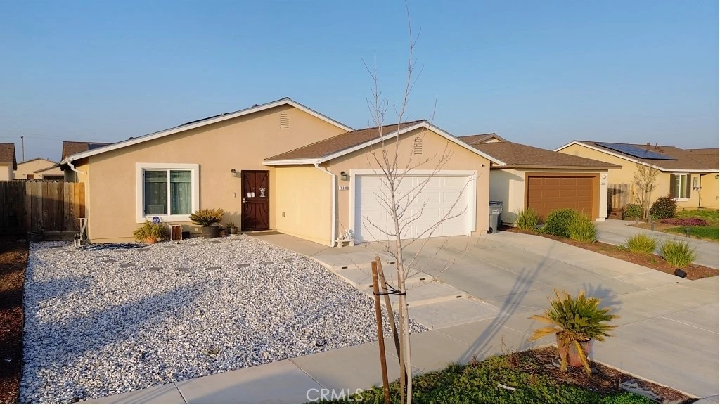 Better than new and only 3 years old! This beautiful home welcomes you with an extra-wide driveway, concrete entry with solar lighting, and stylish low-maintenance drought-friendly landscaping. Step inside to a thoughtfully designed floor plan featuring a private bedroom at the front of the home perfect for guests or a home office. The stunning kitchen shines with gorgeous granite countertops, abundant cabinetry, and a large pantry, all flowing seamlessly into a spacious Great Room ideal for entertaining or relaxing with a large TV. Two generous secondary bedrooms share a well-appointed hall bath, while the private primary suite boasts a large walk-in closet and an ensuite bath. The oversized garage includes a tankless water heater, and owned solar delivers energy efficiency and long-term savings. This move-in-ready home truly checks all the boxes!