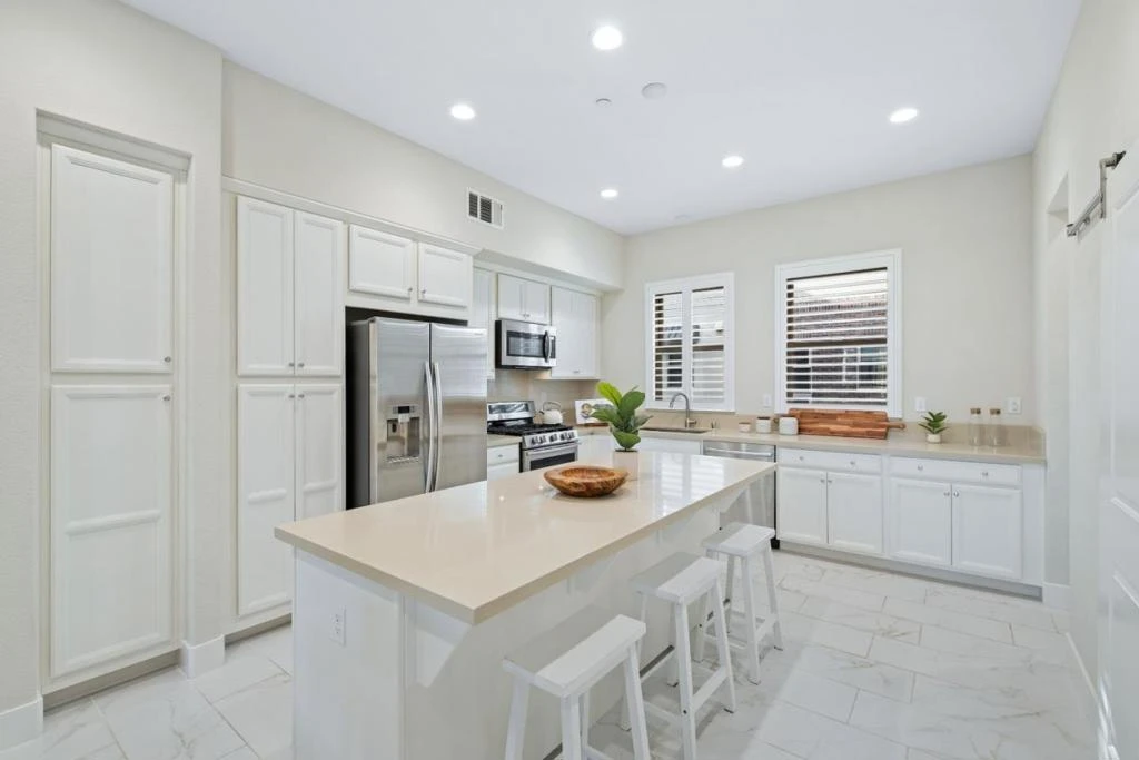*7-year-new Milpitas home with no front neighbors & a bedroom with a full bath on the first floor. Access to top-rated schools and a perfect blend of privacy, comfort, & modern living. *The open-concept main level features a bright living area with marble tile flooring, recessed lighting, & a large center island. The chefs kitchen offers white cabinetry, stainless steel appliances, & a spacious pantry with a stylish barn door. Step out to a private balcony with unobstructed views. *Upstairs, each bedroom has its own bath. The primary suite impresses with a 12.5-ft ceiling, extended windows, & a walk-in closet. *Additional highlights include a laundry room with a sink & cabinetry, dual-pane windows with shutters, a two-car side-by-side garage with a 220V EV outlet, & pre-wired for a future solar panel. *Enjoy walking-distance access to Milpitas BART & easy commutes via Hwys 880, 237, and 680. Close to major tech campuses (Nvidia, Google, Supermicro, Apple) and shopping such as Great Mall, Trader Joes, H Mart, Costco, & Ranch 99. Nearby parks include Delano Manongs (McCandless) Park, accessible through a private community gate, & Augustus Rathbone Park. *Families will appreciate top-rated schools: Mabel Mattos Elem (10/10), Rancho Milpitas Middle (9/10), & Milpitas High (9/10)