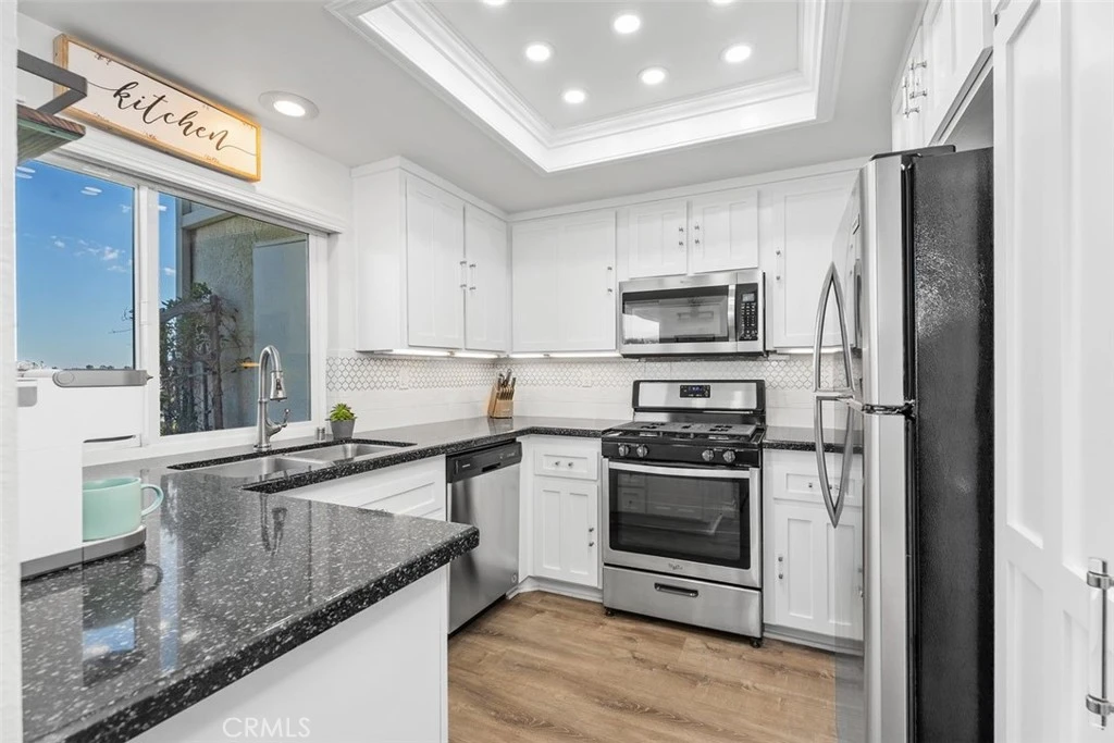 Welcome to resort-style living on Beautiful Lake Mission Viejo! Nestled within the highly desirable lakefront community of Mallorca in the heart of Mission Viejo, this beautifully maintained two bedroom and two bathroom home offers an exceptional blend of comfort, privacy and a prime location. Step inside to a bright, open and inviting floor plan filled with natural light, views of the Saddleback Mountains and Lake Mission Viejo. The spacious living and dining areas flow seamlessly with their oversized glass sliders, windows, light laminate wood flooring and a cozy brick fireplace making the home perfect for both everyday living and entertaining. The remodeled kitchen is light and bright with lake views, granite countertops, stainless steel appliances, white cabinets and a stone backsplash. The hallway leads you to the inside laundry closet, large linen cabinet with stone accents, a secondary bathroom and the two bedrooms. The primary bedroom offers a peaceful retreat feel with calming views of the lake and an ensuite bathroom with a stone walk-in shower, dual sinks and a large closet. The covered patio is spacious with breathtaking lake views perfect for relaxing after a busy day or entertaining with friends and family. The resort-style amenities includes a 24-hour guard at the front gate, two pools/spas, beautifully maintained landscaping and walkways all around the community. The Mallorca private beach boasts covered picnic areas, bbqs, racks for paddle boards/kayaks, community boat dock and limited private boat slips if you wish to have your own boat at the lake. Also included is a membership to the wonderful Lake Mission Viejo where you will enjoy two beaches, a clubhouse, concerts, boat/water rentals, fishing, sand volleyball, playground and swimming. Very close to wonderful lakefront restaurants, shops, gyms and more. You will truly be Living The Good Life! (Click onto the 360 icon under the map for the amazing drone video)