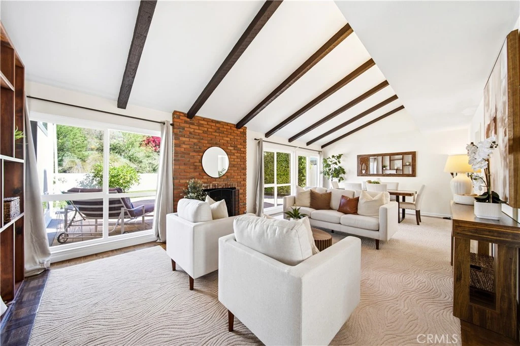 Welcome to 25208 Terreno Dr, a beautifully updated residence located in the highly desirable La Paz community of Mission Viejo. Offering approximately 2,657 square feet, this spacious split-level home features 4 bedrooms and 3 bathrooms, including a convenient downstairs bedroom and full bath, ideal for guests or multi-generational living. The inviting main level showcases vaulted ceilings with exposed beams, a cozy fireplace, and abundant natural light, creating a warm and open atmosphere. The updated kitchen includes a charming breakfast nook and flows seamlessly into the living spaces, while sliding doors lead to a private backyard surrounded by mature landscaping, perfect for outdoor entertaining or peaceful relaxation. The lower level provides an additional family room, bedroom, and remodeled bathroom, offering flexible space for a media room, guest suite, or extended living area. Upstairs, the expanded primary suite serves as a private retreat featuring its own fireplace and an elegantly updated bathroom with upgraded cabinetry and a freestanding soaking tub. A dedicated office with skylight provides a bright and functional space for work or study. Additional highlights include paid solar, repiped sewer line, dual-pane windows, a three-zone HVAC system with updated zoning controls, fresh exterior paint, and new front and rear hardscaping. Ideally located near award-winning schools, parks, shopping, dining, and major commuting routes, this home offers an exceptional combination of space, comfort, and convenience in the heart of Mission Viejo.