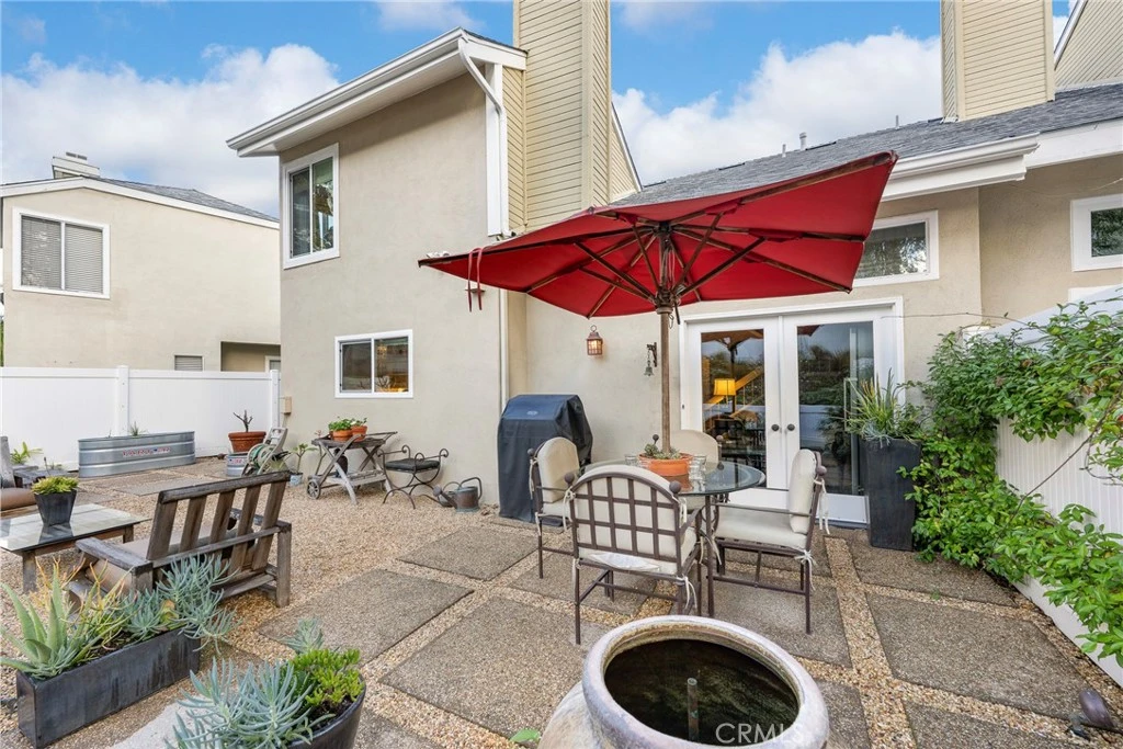 Price Reduced. Highly upgraded and beautifully appointed home with one of the largest yards in the community, ideally located near major shopping, dining, medical centers, and offering easy freeway and toll-road access. This exceptional residence showcases deluxe solid wood flooring, upgraded carpet upstairs, and smooth ceilings throughout after popcorn removal. Thoughtful architectural details include crown molding, wainscoting, upgraded baseboards, custom doors, Baldwin hardware, French doors in the living room, and elegant niches in both the primary and secondary baths. The chef’s kitchen is a true showstopper, featuring custom cabinetry with roll-outs and soft-close drawers, granite countertops, under-counter lighting, upgraded pantry, electric kitchen shades, and a striking backsplash above the range. Premium appliances include a 36" Wolf range, Zephyr exhaust hood, Wolf microwave, Bosch dishwasher, and Bosch refrigerator, ideal for both daily living and entertaining. All three bedrooms feature custom closet systems, including soft-close cabinetry in the primary suite. Bathrooms have been tastefully remodeled with upgraded showers, toilets, beadboard detailing, soffits in the primary bath, and refined finishes throughout. Additional upgrades include dual-pane windows throughout, Nest thermostat, surround sound in the living room, upgraded fireplace and mantel, recessed lighting throughout, custom shades and draperies, upgraded linen storage, and downstairs closet cabinetry. The garage is enhanced with custom cabinets and a newer garage door motor and openers. The expansive backyard, one of the largest in the neighborhood, offers exceptional outdoor living with pavers, fountain, and extensive exterior lighting, creating a serene and resort-like setting. Smart-home features include a Ring doorbell and Ring cameras covering the side entry and backyard. No detail was overlooked. Enjoy a truly move-in-ready home offering comfort, quality, and style, just minutes from the Shops at Mission Viejo, Mission Hospital, regional malls, dining, recreation, and convenient access to the I-5 freeway and 241 toll road.