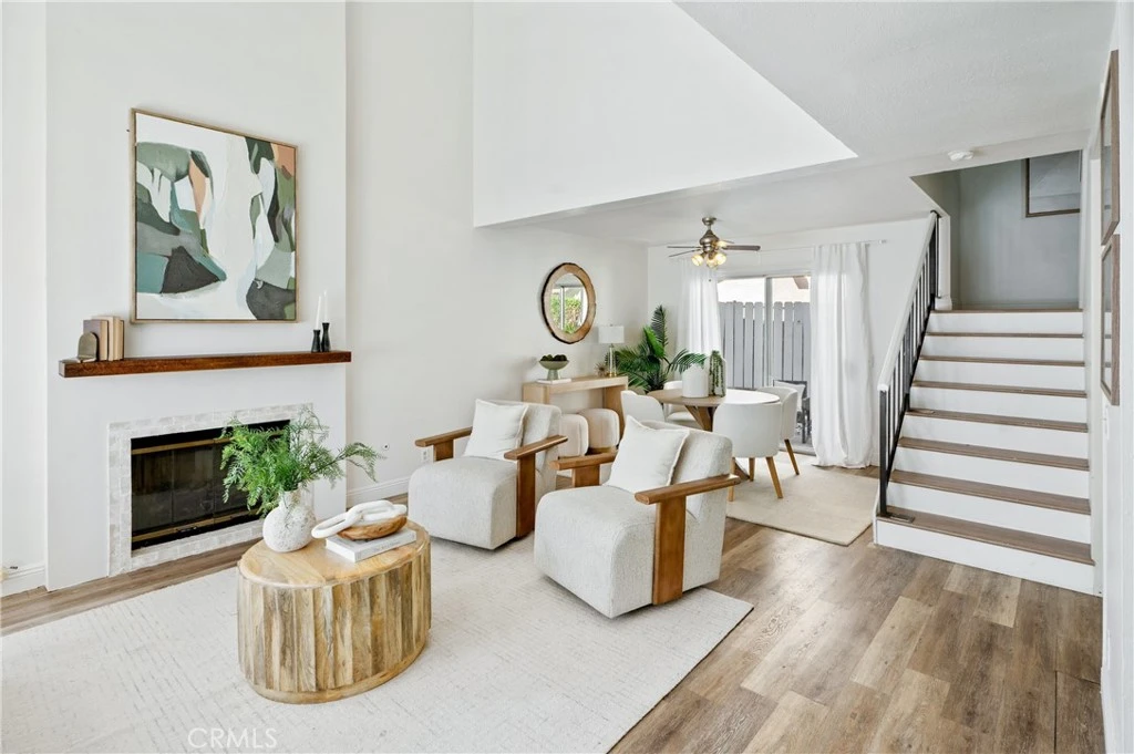 Great opportunity to own a beautiful four-bedroom, two-story single-family home in the highly desirable California Colony community of Mission Viejo! This elegant, natural light-filled residence features luxury vinyl plank flooring and fresh designer paint throughout, creating a bright and inviting atmosphere. Step into the welcoming living room with soaring vaulted ceilings, leading into an open-concept layout that flows seamlessly into the dining area and kitchen, complete with white cabinetry and double glass sliding doors. A convenient main-floor bedroom and full bathroom offer flexibility for guests or multi-generational living, while three additional decent sized bedrooms are located upstairs. The windows in both the primary bedroom and main-floor bedroom have been replaced, enhancing energy efficiency. Major system upgrades include an AC unit and water heater replaced within the past five years, offering peace of mind for the next homeowner. The private backyard is perfect for relaxing or entertaining, featuring outdoor dining space, lush greenery, and added privacy. Additional highlights include a two-car attached garage with driveway and EV charging capability, low HOA, and low property taxes. Ideally located within walking distance to award-winning schools, this home offers both comfort and convenience. Enjoy exclusive access to Lake Mission Viejo Association amenities, including North and South beaches, boating and watercraft, swimming, clubhouse, concerts, and year-round events. Schedule your private tour today and experience this exceptional opportunity to own a single-family home and enjoy the sought-after lifestyle in the heart of Orange County!