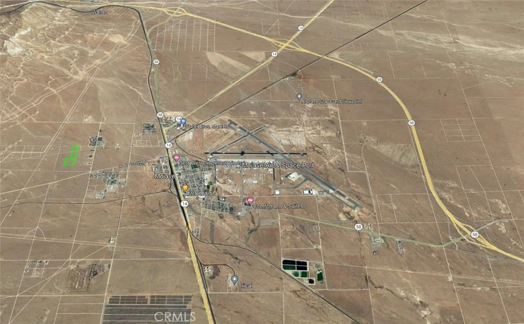 TAKE THE 14 FREEWAY TO OAK CREEK, GO WEST TO HOLT ST., GO NORTH TO DOUGLAS STREET, GO WEST AND PASS THE TRACT HOMES. NOW REFER TO THE PLAT MAP FOR EACH SEPARATE PARCEL 427-062-24 AND 427-062-23 IS ALSO FOR SALE, SEPARATELY. Marketing Remarks: GREAT INVESTMENT NEAR TRACT HOMES AND CUSTOM HOMES. CLOSE IN TO MOJAVE SPACE PORT AND SHOPPING. EASEMENTS ARE ON THE DEED. Buyers are advised to conduct their own Property investigations to satisfy themselves. Verify the Property's Condition. Buyers are to check with the appropriate Parties, City or County for all of the following, Zoning, permitted uses, legal access, size of parcel and buildable space, Legal Access, Current easements & future easements, Future Zoning, Current & Future Uses of the Land. Buyers are to contact the appropriate parties to Investigate Any available utilities/services in the area, Water, Gas/Propane, Electricity, Sewer/Septic, etc. Buyers are to Hire and conduct a survey to ascertain the true Location of the Parcel. Buyers are to verify their own intended use of said property with the appropriate Parties, Zoning and Planning Department at the Kern County or City. Buyers also advised to contact the California Department of Fish and Wildlife as to any protected plants, trees or species. Buyers are to Verify if the land is Located in any Significant Ecological Areas. Agent Remarks: SEE AIRPORT INFLUENCE MAP IN PICTURES, PLEASE DISCLOSE TO YOUR BUYER. SIGN MAP & SUBMIT WITH YOUR OFFER.EASEMENTS ON THE DEED.