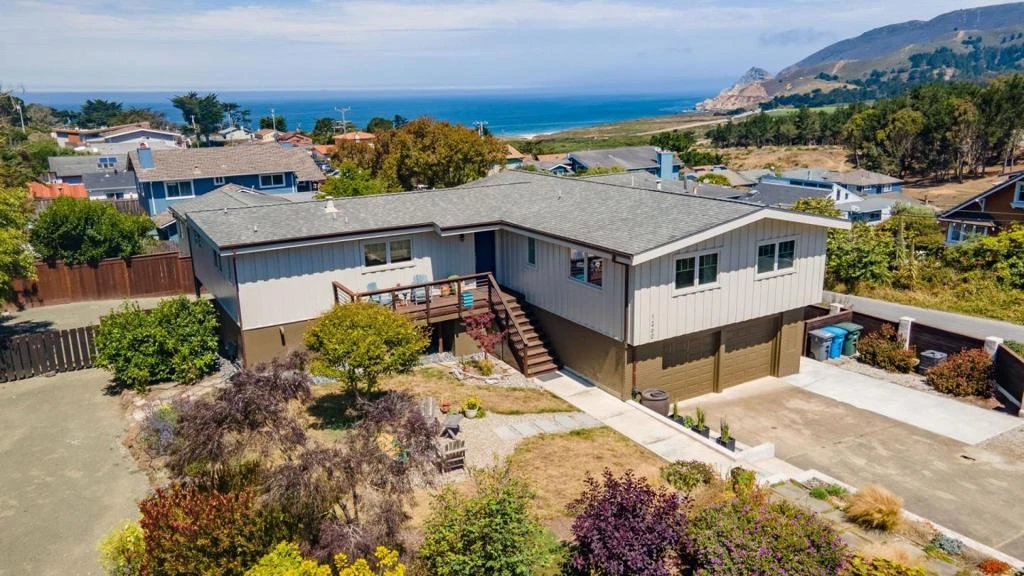 Ocean and mountain views - This beautiful two-story, three bed/three bath home is located next to one of the most scenic stretches of the California Coast! From the upper deck you can enjoy the Pacific Ocean vistas on one side and some amazing coastal views on the other. Newly interior and exterior painted home has a charming kitchen with plenty of cabinet space, stainless steel appliances, an open concept floor plan, with living and dining areas connected. The cozy upstairs lounge area flows out towards a spacious deck with amazing views. The spacious bedrooms boast beautiful wood floors. The large, attached garage, with dual doors, is tiled for an amazing multi-purpose option, and a spacious oversized yard to enjoy! There is also a very large tiled storage area off of the laundry area that is multi-purpose and can also be used for storage, workouts or bonus playroom for the kids. This area is not included in the square footage of the house. There is also a second driveway and space for a separate ADU cottage. Newly painted exterior 2022 and interior in 2024. Solar panels purchased in 2023. Drip system for front garden with apple and lemon trees, sprinklers for front yard grass.