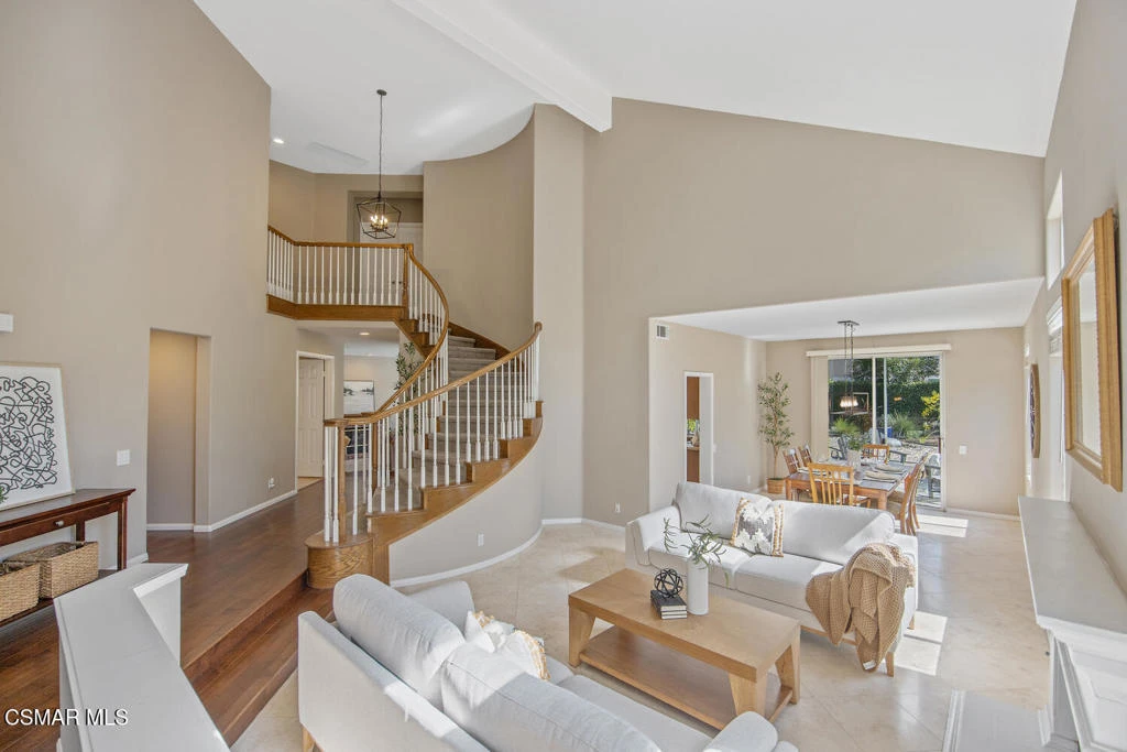 Welcome to 4308 Cedardale Rd -- a 3,145 sq ft, 5-bedroom home located in one of Moorpark's most highly sought-after communities.This light and bright home welcomes you with soaring ceilings, beautiful natural light, and impeccably maintained landscaping. The spacious floor plan includes engineered hardwood flooring and travertine flooring downstairs and a downstairs bedroom with a full bathroom, perfect for guests or multi-generational living.The beautifully updated kitchen with island and large walk-in pantry opens to a large family room with a cozy fireplace, creating the perfect space for everyday living and comfortable family gatherings. A large living room flows seamlessly into the dining room, offering an ideal setting for entertaining guests and hosting special occasions.A beautiful sweeping staircase leads upstairs to the primary bedroom suite, complete with a comfortable sitting area and a spa-like bathroom featuring marble countertops, dual vanities, and two spacious closets.The laundry room is conveniently located upstairs, along with three additional bedrooms and additional bathroom with marble countertops and dual sinks. The home also includes updated lighting and an efficient whole-house fan to take advantage of the cool Moorpark evenings.Step outside to a beautiful backyard featuring stunning hardscape, low-maintenance landscaping, and a serene, private feel. The oversized yard offers plenty of space and is large enough to add a pool if you so desire, creating the perfect setting for relaxing or entertaining.Enjoy being close to award-winning schools, shopping, dining, and easy freeway access. This is the one you've been waiting for.