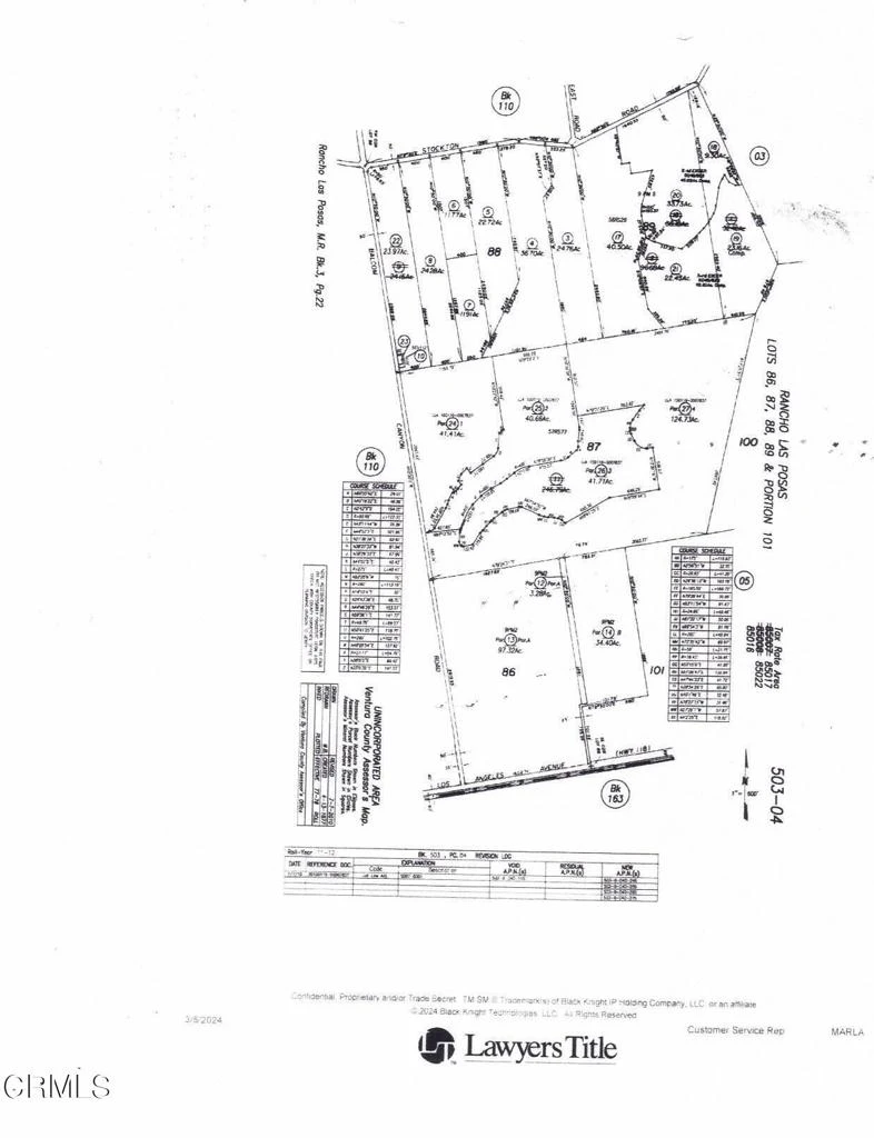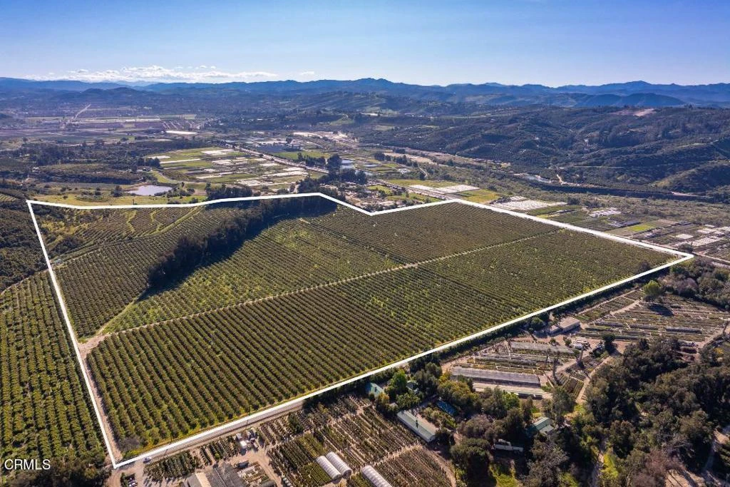 Lemon/Avocado Grove This property with level topography has a strategic location with frontage along both Highway 118 (L.A. Avenue) and Balcom Canyon Road, positioned just outside the City of Moorpark. The dual road frontage provides excellent access and visibility, which is particularly valuable for agricultural operations requiring transportation of goods and equipment.Climate and Growing Conditions: Property is subject to Bankruptcy Court Approval and Overbid.The property benefits from Ventura County's Mediterranean climate, which is characterized by mild winters, warm summers, and limited rainfall. This climate is ideal for diverse agricultural pursuits, particularly for high-value crops like avocados, which are being grown on the property. Mediterranean climates typically feature:Warm, dry summers with temperatures rarely exceeding 95F.Mild winters with minimal frost risk,Annual rainfall typically between 15-25 inches.Water Resources:The property has two water sources:A private well producing approximately 900 gallons per minute (GPM), for agricultural operations with allocations, 2,025 shares in the Berylwood Heights Mutual Water Company as a backup water source. This water supply is an added benefit for agricultural operations. Land Characteristics:The property's 134.64 acres are divided into: 3 parcels 503-0-040-120,130,140 with access roads and utility areas.Infrastructure:Zoning:The AE-40 zoning (Agricultural Exclusive, 40-acre minimum lot size) applies to all three parcels. This zoning typically limits non-agricultural development maintaining the character of the area. An LCA Contract under the Williamson Act (#51-4.140), provides additional property tax relief.Development Potential:The property location between the City of Moorpark and the City of Camarillo suggests potential long-term development value, though the current AE-40 zoning would require changes for any significant alterations in the land use.