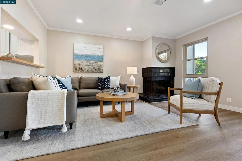 This beautifully updated 2-bedroom, 2.5 bath condo offers 1,191 square feet of light-filled, well-designed living space. The main living area features an open living and dining space with wide plank flooring, recessed lighting, a fireplace, and sliding doors that open to a private balcony with peaceful hillside views. The kitchen has been refreshed with white cabinetry, stone counters, stainless steel appliances, and a convenient pass-through to the living area. A half bath is located on the main living level along with additional storage. Upstairs are two generously sized bedrooms. The primary bedroom includes a private bath, while the second full bath is conveniently located in the hallway. The home has been recently updated with thoughtful improvements throughout. Rare for this property type, the home includes an attached two-car garage and a dedicated in-unit laundry room. Conveniently located near Saint Mary’s College and highly regarded Moraga schools, as well as BART, shopping, dining, and commuter routes.