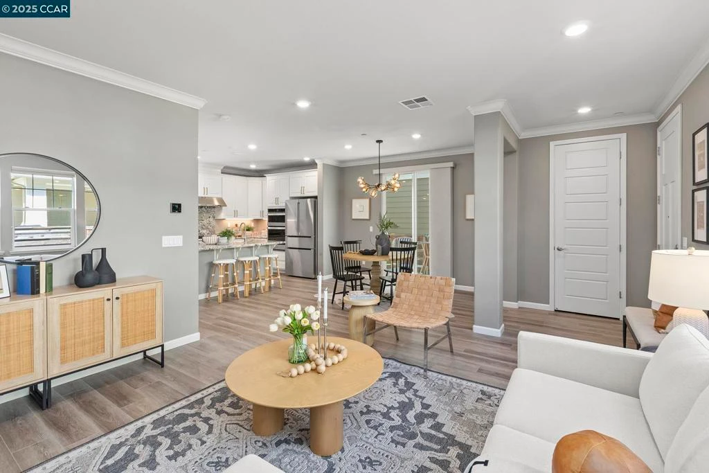 Built in 2019, this beautifully designed townhome style end unit condo offers the perfect blend of contemporary style and comfortable living offering 5 bedrooms, 3.5 half bathrooms, an open kitchen, spacious great room, two-car garage, and two enclosed patios. The main level showcases a stylish open kitchen complete with stainless appliances, an island with bar seating, and a seamless flow into the dining and living areas—ideal for both everyday living and entertaining. The second floor offers 3 bedrooms and 2 bathrooms including a serene primary suite with a spa-inspired bathroom featuring a soaking tub, dual sinks, separate shower, and walk-in closet that’s sure to impress. This level also includes a generous guest bath with dual vanities and a convenient laundry room. On the top floor, discover a private retreat with two additional bedrooms, and full bathroom, perfect for a home office or guest retreat. The home also includes energy efficient upgrades including owned solar panels, and a Tesla charger. Situated in the heart of picturesque Moraga, this residence is surrounded by scenic hills and just moments from Moraga Country Club, the Lafayette-Moraga Regional Trail, local dining and shopping spots, beautiful parks, hiking paths, and some of the region’s top-rated schools.