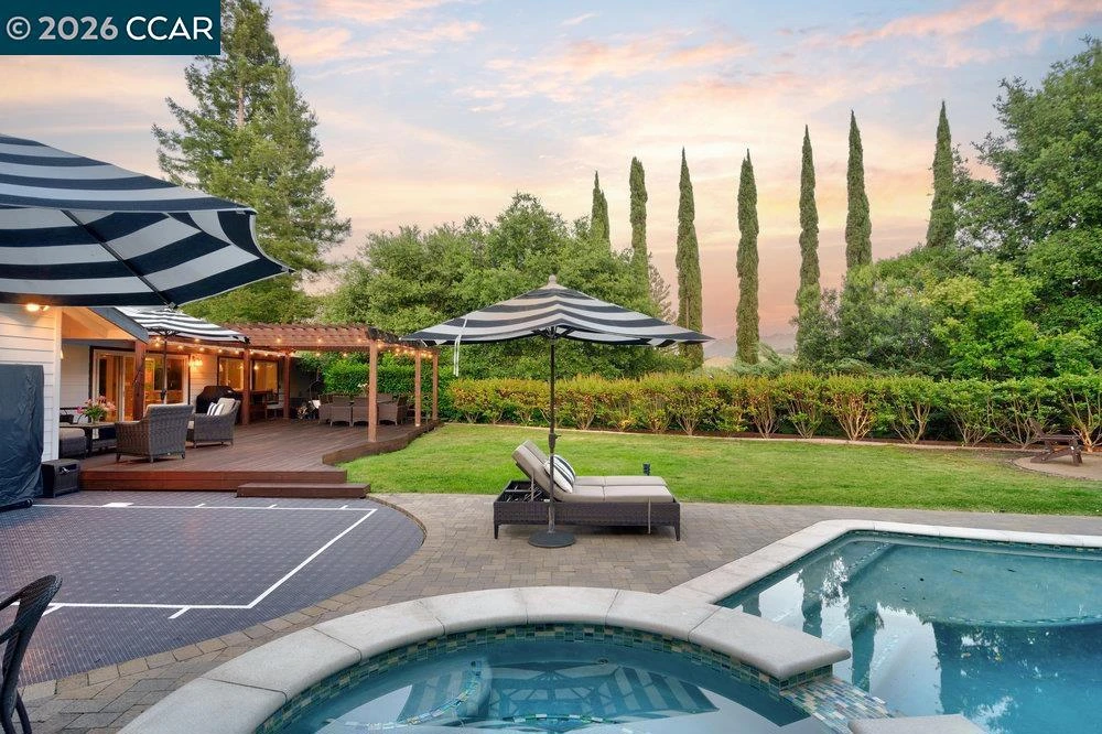 Welcome to the best of California living at this fabulous single-level Rheem Valley Manor retreat. Tucked on a quiet cul-de-sac, this exquisitely renovated 5BD/3.5BA home blends style, function, and seamless indoor-outdoor living. Thoughtfully updated throughout with new flooring, energy-efficient windows and sliders, upgraded moulding, and designer lighting. The stunning eat-in kitchen features all-new appliances, custom shaker cabinetry with glass uppers, and a full bar island with a liquor cabinet, wine and beverage fridges, and generous storage. The spacious primary suite offers three closets; including a walk-in, an office nook, and a spa-like bath with oversized rain shower, private water closet, and dual-sink vanity. All bathrooms are beautifully remodeled with premium finishes. The flat, private backyard oasis includes a remodeled pool and spa, 900 sq ft Ipe deck with outdoor bar and pergola, poolside clubhouse, firepit, and sport court. Solar panels and a finished three-car garage with epoxy floors complete this rare, resort-like offering in a prime location near k-12 top-rated schools & more. Welcome home! For more details visit https://www.314draeger.com