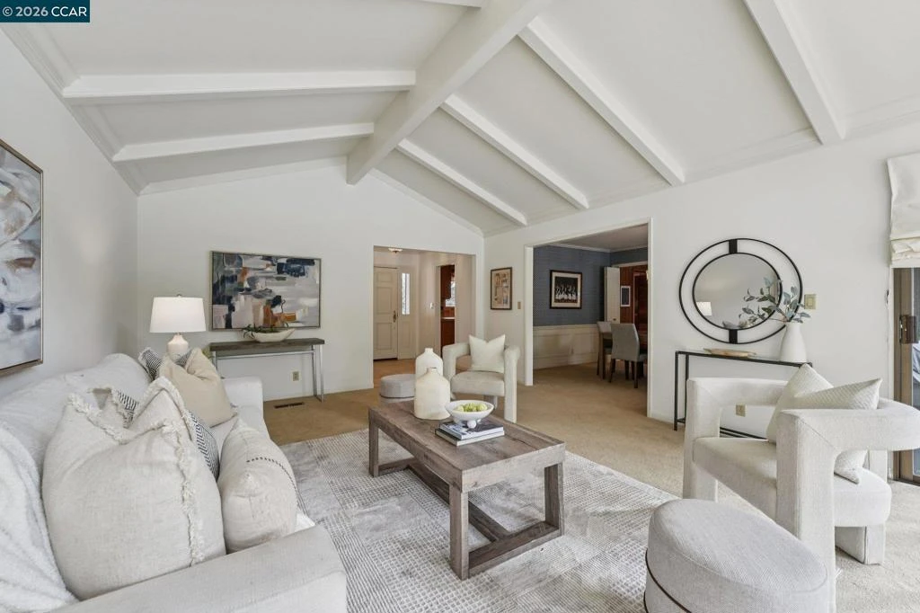 Open Sat. 4/4 from 1 to 4pm. Tucked into a quiet corner on sleepy Sherwood Ct, this special single-story home is offered for sale by its meticulous original owner. The expansive yard features a newly rebuilt pool (2024), a broad turf lawn, and multiple decks and patios for dining, relaxing, and entertaining. Meandering Moraga Creek borders the rear of the lot, creating a serene and private natural backdrop. A generous side yard offers space for play, storage, expansion, or possibly an ADU. The stately home offers 4 large bedrooms and 2.5 baths. The expanded primary suite includes a private sitting area, extra closet space, and access to the rear deck. The formal living room features a vaulted, beamed ceiling and a wall of windows overlooking the yard, creek, and hills beyond. An adjoining paneled dining room seats 8–10, while the kitchen’s expanded eating area serves casual meals for 4–5. The cozy wood-paneled family room includes a brick wood-burning fireplace, wet bar, and built-ins. This is a house to keep. The neighborhood inspires long tenures—many residents have stayed 30+ years, with a few original owners still here after 50+. Set in semi-rural Moraga, the flat, close-to-town location offers easy biking and walking to schools, shopping, restaurants, and transportation.