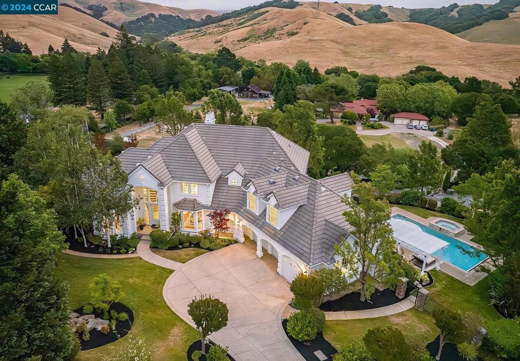 This estate exemplifies Moraga tranquility. Just a mile from Camino Pablo elementary, and 1.5 miles from Joaquin Moraga intermediate, the home sits on 5.52 acres on an aptly named lane – Quail Crossing – overlooking Moraga’s oak-dotted rolling hills. Descend a stone driveway to the white portico and enter the home into a grand foyer under a 20’ ceiling. The living room lies ahead, with a fireplace and hillside views. An office with garden views lies to the left; to the right is the dining room, with a butler’s pantry leading to the kitchen. It features Miele, SubZero and Dacor appliances and a walk-in pantry. The area offers a breakfast bar seating 4-5, an informal dining area with garden and swimming pool access, and a casual family room with French doors and hillside views. Refinished hardwoods cover almost all of the first floor. The spacious principal suite lies at the other side of the first floor, with both garden and hillside views, a fireplace, a spacious walk-in closet, and French doors leading to an outdoor relaxation area. The en-suite bath offers a spa and spacious shower. Up the grand spiral staircase lie the three other bedrooms (with garden or hillside views) and the second casual family room. The home is a rare combination of elegance and Moraga country life.