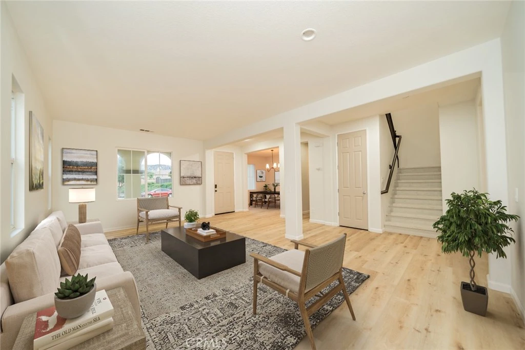 Beautifully updated Moreno Valley home with space elegance, and everyday comfort come together. Located in a desirable community with low HOA dues, this beautifully maintained 5-bedroom, 4.5-bath residence with a 2-car attached garage offers refined living enhanced by thoughtful design and a few modern upgrades. Bright and sophisticated interior featuring new light interior paint, new laminate flooring throughout the downstairs, creating a seamless blend of style, warmth, and functionality. The expansive living room is anchored by a cozy fireplace, providing an inviting setting for intimate evenings and elegant entertaining. A separate formal dining room offers the perfect space for hosting dinner parties, holiday gatherings, or special occasions, adding an extra layer of sophistication to the home. The kitchen serves as a stunning centerpiece, thoughtfully designed with a pantry, newly painted cabinetry, sleek quartz countertops, recessed lighting, and stainless-steel appliances—ideal for both everyday living and elevated entertaining.The main level features a highly desirable and versatile floor plan, including one full bedroom, one full bathroom, and an additional half bath, making it ideal for guests, multi-generational living, or a private executive office. A separate indoor laundry room with built-in cabinetry enhances convenience while maintaining a clean, streamlined aesthetic.Brand new carpeting upstairs, generously sized 4 bedrooms along with a spacious loft, offering an additional living area perfect for a media lounge, home office, or relaxation space. All bedrooms are thoughtfully appointed with new ceiling fans, providing comfort and flexibility for a variety of lifestyle needs.The primary suite is a serene retreat filled with natural light, complete with a walk-in closet and a well-appointed en-suite bathroom with tile flooring, designed to deliver a spa-like experience of comfort and tranquility. Outdoors, the backyard is designed for easy enjoyment and low maintenance, featuring tasteful landscaping that creates a peaceful setting for entertaining, unwinding, or enjoying weekend gatherings. With its refined layout, tasteful upgrades, and low HOA, this home offers an exceptional opportunity to enjoy luxury living without compromise.Ideally situated near freeways, schools, shopping centers, hospitals, parks, and major commuter routes, this exceptional property delivers both convenience and sophistication in a prime Moreno Valley location.