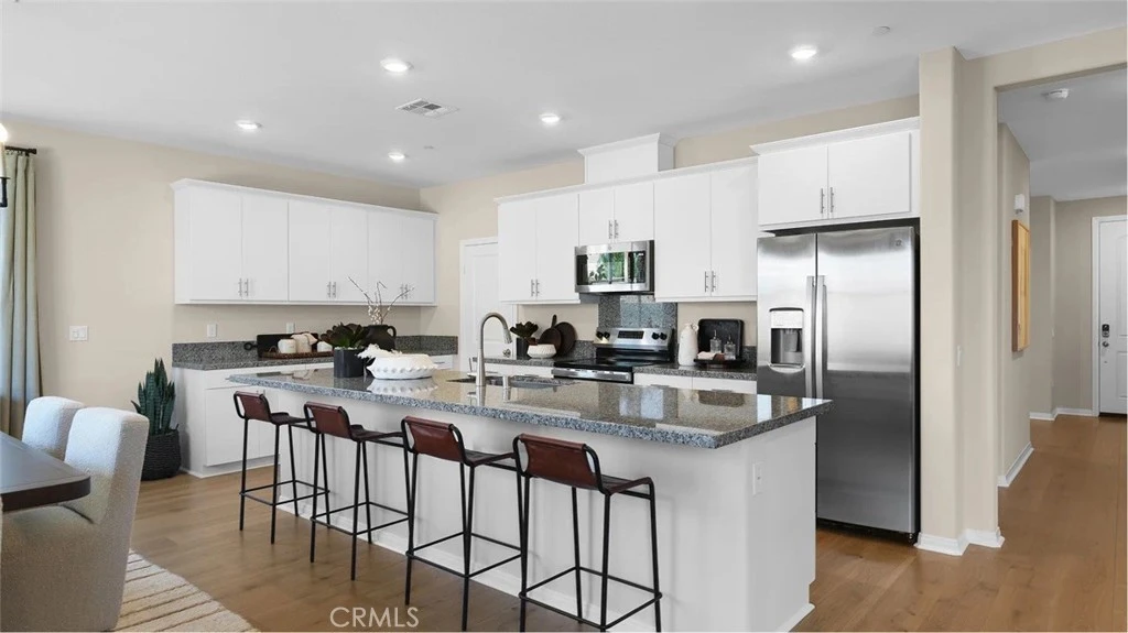 NEW CONSTRUCTION! This new two-story home features an inviting open-concept layout on the first floor, blending the kitchen, living and dining areas for simple transitions and multitasking, and a bedroom and full bathroom are secluded off the foyer. On the second floor, a versatile loft provides a shared living space easily accessible from three bedrooms and a luxe owner’s suite, complete with a full bathroom and walk-in closet. The kitchen features new caledonia granite counters and white cabinetry. Estrella is a gated community of brand-new single-family homes for sale, coming soon to Moreno Valley, CA. Residents will enjoy access to onsite amenities, including a pocket park with shade structures, a tot lot and BBQ area. Estrella is located near the March Air Reserve Base, perfect for military families and personnel. Head over to the Lake Perris State Recreation Area to enjoy the outdoors, with opportunities to boat, hike and more, or enjoy endless recreation options at nearby Lasselle Sports Park.