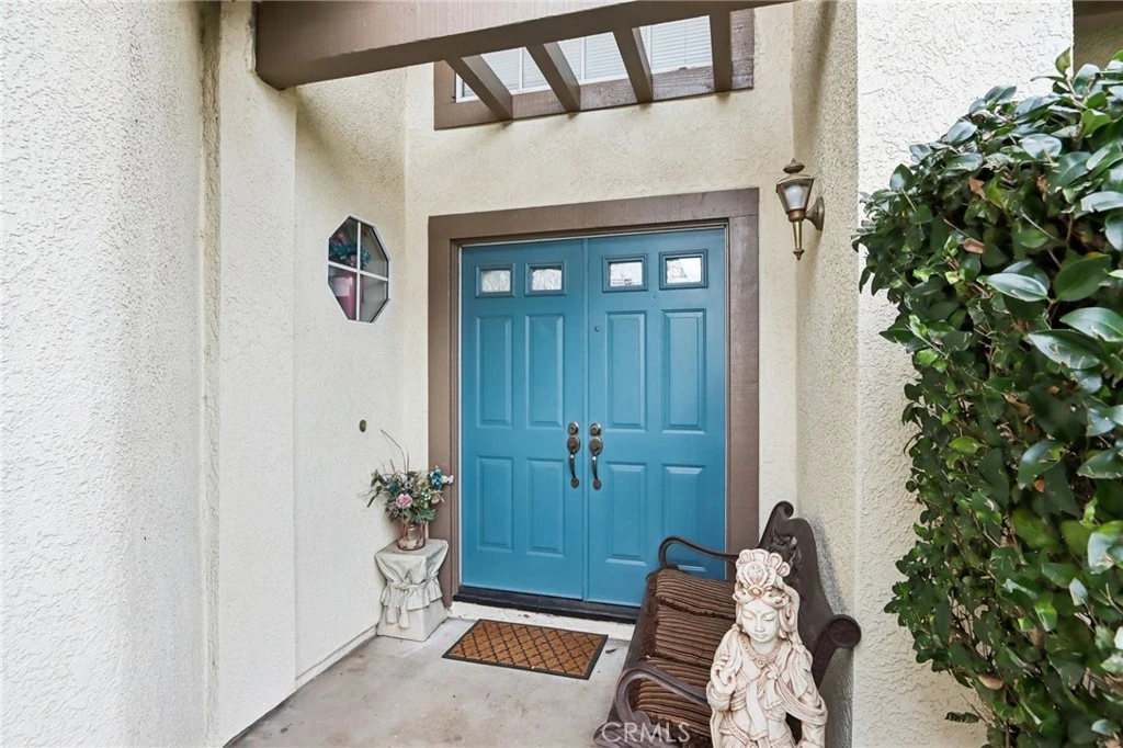 Move-in ready 4-bedroom, 3-bath, 2,585 sqft two-story home with an attached 3-car garage. The front yard features grass, and a fountain. Enter the spacious home through double-doors that open to soaring ceilings in the formal living room and dining room. The kitchen has been remodeled and features quartz countertops, a center island with breakfast bar seating, soft close cabinets and drawers and additional bar seating at the peninsula. The kitchen overlooks the family room with fireplace and secondary dining area. There is also a downstairs bedroom and bathroom with a walk-in shower, as well as a laundry room. Take the wide staircase to the 2nd floor where you will find the massive primary suite with retreat area, as well as an attached wrap around deck, and a spa-like ensuite with dual vanities, a soaking tub, a separate shower, and a walk-in closet. There is also a full-size hall closet for the 2 secondary bedrooms to share. Enjoy the private backyard with grass, covered patio area, mountain views, and no rear neighbors! Conveniently located near schools, shopping, and dining, with easy access to the 60 and 215 freeways. Schedule your tour today!