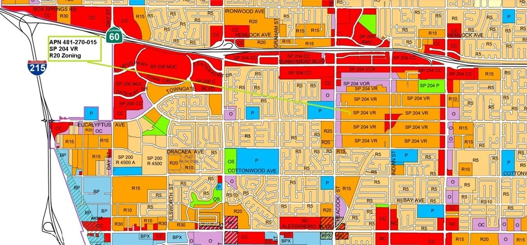***Come VIEW and MAKE an OFFER today! HIGH-DENSITY LAND opportunity located in Moreno Valley CA. This 9,900sf parcel in the Edgemont subdivision is zoned R20 - SP 204 VR allowing for a MULTI-FAMILY development up to 4-UNITS. Situated a few blocks from the 60-FWY and I-215 the site offers excellent access to all of Southern CA. In addition, the lot is adjacent to existing multi-family dwellings and utility lines making it ideal for development in order to meet the growing demand for housing in the area. A definite must see OPPORTUNITY before it's too late.***