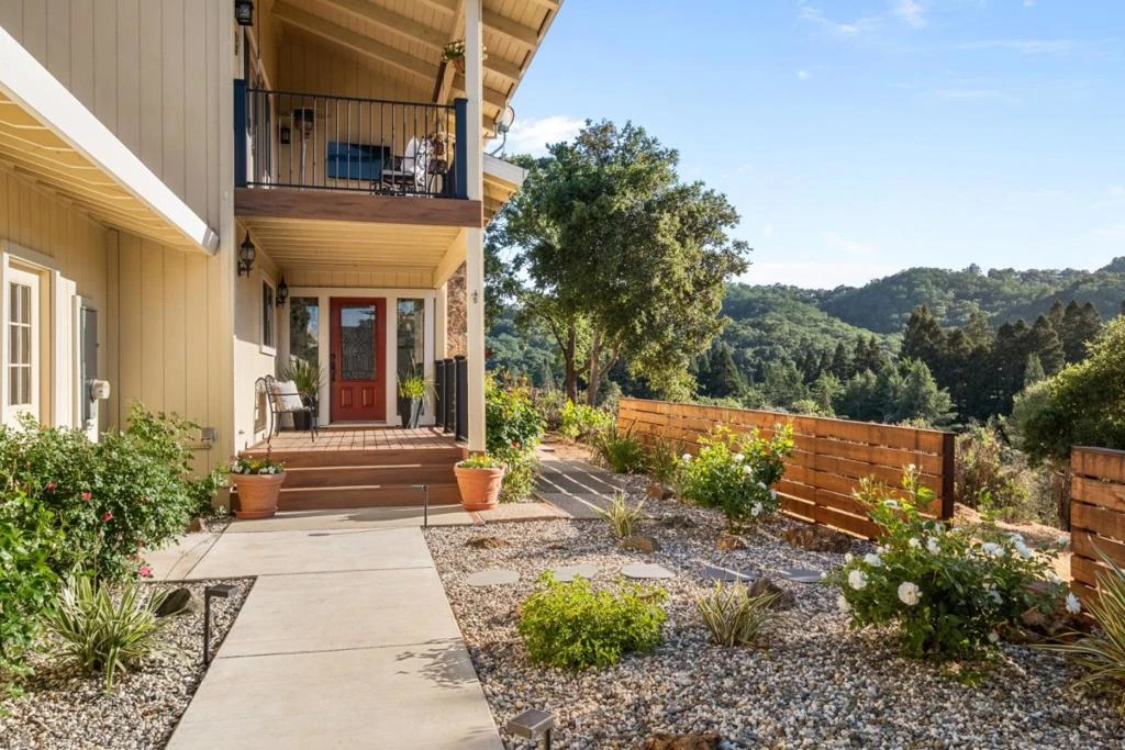 Set in the rolling hills of Paradise Valley, this private Morgan Hill estate offers refined living on ~3.4 acres of serene, hilltop land. Recently reimagined with a cohesive modern design, the home blends warmth and sophistication throughout. A reverse floor plan places the main living areas and primary suite upstairs, capturing sweeping hillside views. The vaulted great room features wood-beam ceilings, wide-plank flooring, and seamless access to a covered deck for effortless indoor-outdoor living. The chef's kitchen is beautifully appointed with custom cabinetry, premium appliances, including a 48 BlueStar dual-fuel 8-burner range, a Liebherr refrigerator, a Bosch dishwasher, and a large island and pantry. The upper-level primary suite offers a peaceful retreat with a spa-inspired bath, dual vanities, a glass shower, and a private patio. The lower level lives like a resort, with three-bedroom suites, a spacious family room, and direct access to the pool, spa, and pergola lounge. Enjoy multiple entertaining areas, open land for recreation or hobby farming, and a detached workshop. Private, yet minutes from Morgan Hill's vibrant downtown, this is more than a home-it is a place to slow down, spread out, and experience a lifestyle that is increasingly rare in today's market.