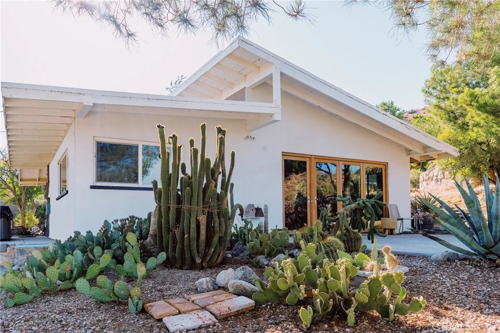 ***BEAUTIFULLY REMODELED MID-CENTURY GEM*** This 1950-built mid-century bungalow has been beautifully restored and remodeled with custom designer finishes and amenities. Nestled up against a hillside, the glass wall of the great room features custom La Cantina bifold doors that open the whole house up to a serene mature cactus garden with epic long views of layered mountains. Inside is a wood-burning stove that provides both heat and ambience. A new mini split unit provides additional heat and air conditioning for year-round comfort. The designer kitchen features custom cherry wood cabinetry by local designer Fire on the Mesa, a hidden Fisher Paykel dishwasher drawer, a filtered water system, and a gas Viking range. The polished concrete floors stretch throughout the kitchen and great room areas. The vaulted wooden beamed ceiling covers the entire space, and add to the open and relaxing feeling of the naturally lit interior. The bedroom also features view windows and provides a quiet comfortable space for sleeping. The bathroom includes a tiled shower and beautiful custom cabinetry as well as a concrete sink crafted by a local designer. There is a bonus room along the backside of the home provides extra living space, and could be used for a second bedroom or office, as well as new laundry facilities that are easy to access but out of view. The detached garage has been upgraded, insulated, and finished inside for use as a studio, recreation space, or as a two-car garage. This dreamy hideaway is well located on a quiet paved road and has easy access to local amenities, and is a stone’s throw away from Big Morongo Canyon Preserve, offering a front row seat to 200+ species of migrating birds, as well as resident rabbits, squirrels and butterflies. The property includes an elevated patio and historic root-cellar with a stone masonry-edged terrace. An extra concrete slab perched high on the hill would be a great spot for a future guest casita. This location is 20-30 minutes from either Joshua Tree or Palm Springs. This home is offered fully furnished with high-end and custom pieces, including a Natuzzi leather sofa, a Tempur-Pedic queen size mattress and bedframe, and a Hot Springs luxury spa. The entertainment center features a projection screen for viewing movies and other media. The high-speed Wi-Fi is reliable for both streaming and working from home type applications. The home is an extremely successful short-term rental with 5-star reviews.