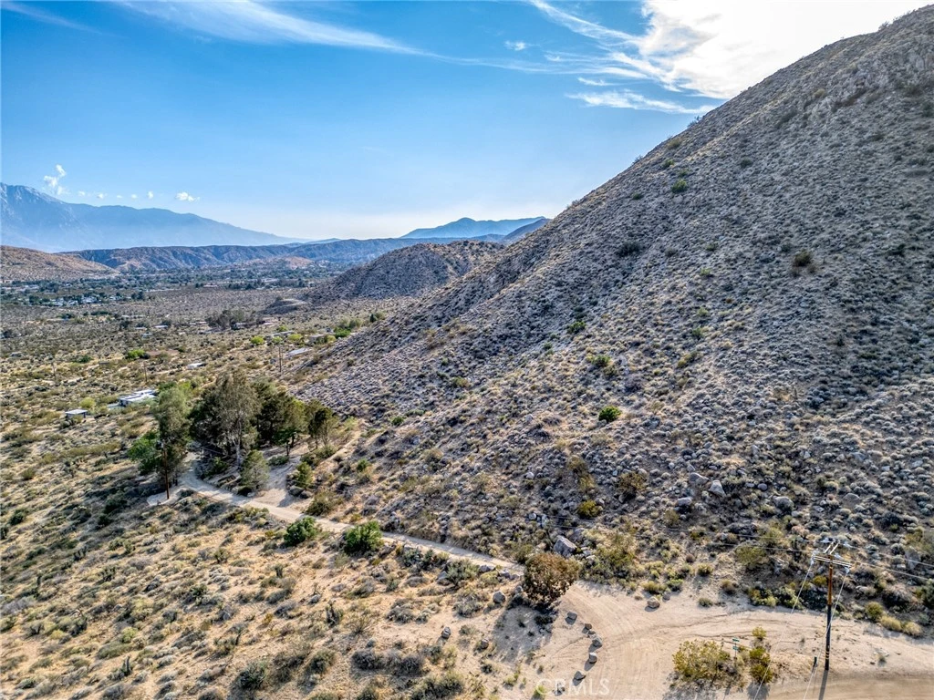 Discover a truly rare opportunity to own a custom home nestled at the base of a mountain on 5 breathtaking view acres, surrounded by mature oaks and native desert trees. This private sanctuary is a hidden gem, where nature and architecture harmoniously meet. As you pull down the driveway, you’ll be immediately struck by dramatic rock formations and panoramic views, setting the tone for the secluded retreat that awaits. Step inside to find a stunning interior featuring polished concrete floors, soaring tongue-and-groove wood-beamed ceilings, and no expense spared on fine details throughout. Three sets of French doors lead to a raised deck offering sweeping views of the San Jacinto Mountains and the surrounding landscape. The craftsmanship continues with custom wood treatments on the interior doors and walls, and a beautifully designed full bathroom with a custom sink and shower tub combo. Natural light floods the home through expansive windows, each equipped with automatic metal security shutters for peace of mind while away. Outside, unwind in your own desert oasis complete with a spa, rock pathways, and serene desert landscaping. Additional highlights include your own private water well, central air conditioning, and forced air heating. Homes and properties of this caliber rarely come to market—don’t miss your chance to own this unique and spectacular retreat. Schedule your private tour today!