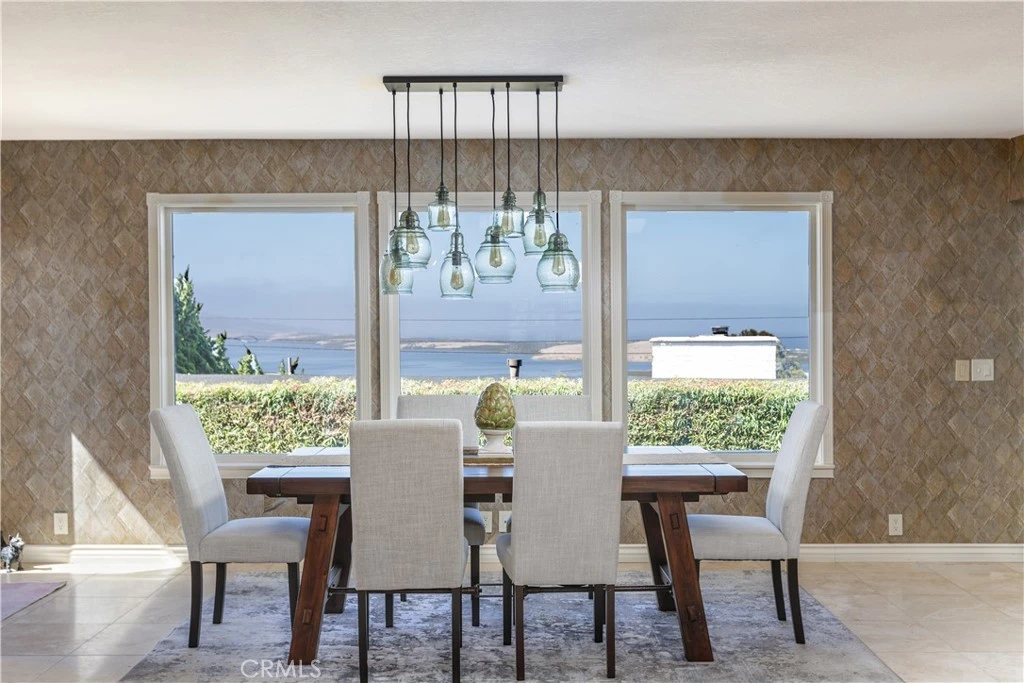 Casual Elegance, it's time to start living the Cool, California Beach Lifestyle. If you have been waiting for that special home on the coast, this is it. This turn-key, entertainer's paradise awaits your arrival. Located in the coveted Morro Heights neighborhood, there are forever views from almost every window. These views can never be blocked as the airspace above the neighbor is deed-restricted. The high ceilings, open floorplan, stone floors, & natural lighting welcome you. Meticulously landscaped & well-maintained front & backyards complement this lovely property. 3 bedrooms, 2.5 bathrooms, 2,971 sq. ft. home on a 6,970 sq. ft lot. A 2-level home offering single-level living. A second ensuite bedroom including a generous bathroom, & glass doors open to the beautiful sanctuary garden on the lower level. The floorplan is open & airy and flows beautifully, high skylights, abundant windows, & the constant stunning backdrop does not disappoint. Travertine flooring, tile in bathrooms, & carpet. The great room hosts; a fireplace, a spiral staircase to the upstairs loft, a wet bar, a powder room, a dining area with gorgeous views, & access to the backyard. Adjacent is the gourmet kitchen: a breakfast niche with blue water views, granite bar-top, counters, & a center island. A walk-in pantry, built-in stainless appliances, a farmhouse sink, and custom cabinetry. Just up the stairs: expansive primary suite with exceptional views, from Morro Rock to MDO! A romantic fireplace, bay window, generous walk-through closet with a second set of washer & dryers. This primary suite is attached to a light-filled spa-like bathroom. A spa tub, private water closet, walk-in shower, & a bay view relaxation niche. Through this space, you enter the upstairs viewing loft with views & room to lounge. This is a perfect location to enjoy the sailboats & sunsets! The backyard is ideal for entertaining! With new Trex composite decking, mature, low maintenance landscaping, & 2 locations to enjoy the magical Morro Bay sunsets & the ocean breezes. A 2-car garage & spacious driveway provide ample parking for your family & guests. Upgrades: interior & exterior paint, newer carpeting, a new composite roof, 2 new water heaters, & a new washer and dryer upstairs. This is a rare opportunity to capture a PREMIER property in a fantastic location. Just blocks to some of the best golf on the Central Coast! A great place to appreciate all the special gifts on the Central Coast.