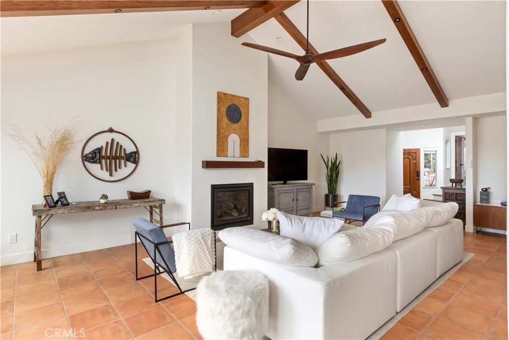 Turnkey Morro Bay Condo in a Great Downtown Location! This Spanish Style condo has been renovated from top to bottom with an exquisite selection of Saltillo Tile flooring throughout, upgraded kitchen appliances including a Bertazzoni ITALIA Yellow six burner gas stove, refrigerator, wine refrigerator, sink, and newer kitchen cabinets. The fully remodeled two primary ensuites boast beautifully tiled walk-in showers and one with an elegant soaking tub. Guests are easily accommodated with the separation of primary suites and easy access to the living areas. This upper-level condo shows off its high vaulted living room ceiling with newer faux beams, an elegant ceiling fan, and a newer glass fireplace. Enjoy two balconies: one off the living room and another off one of the primary suites. There is an ocean view and view of Morro Rock off the front primary suite. Upgrades abound in this stunning condo. It can become your vacation home or primary home. Wonderfully situated close to downtown and within walking distance of nearby restaurants, coffee shops, the local movie theater, and the beach. Spend your days exploring the wonders of Morro Bay then retreat to this exquisitely upgraded, turnkey condo! Call your Realtor TODAY!