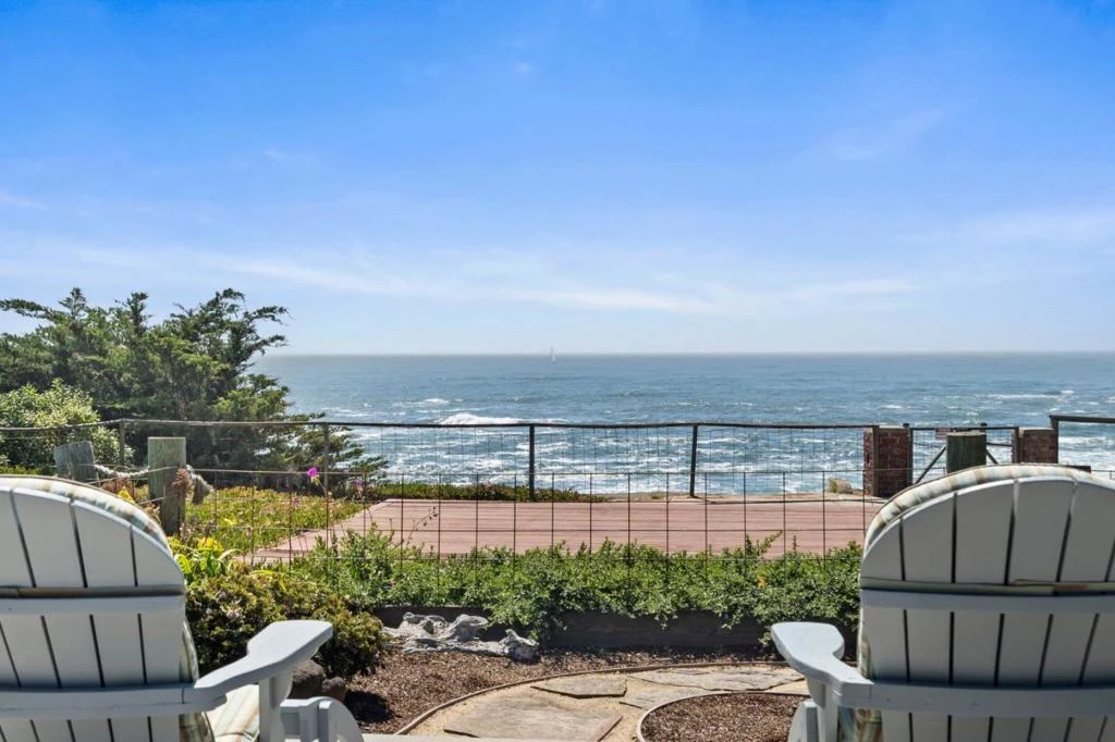 Ocean Views, Sunsets and Harbor Seals! Located on an exclusive quiet cul-de-sac that edges the ocean, this home has a graceful alluring presence surrounded by spectacular landscaping designed to blend the natural elements with the colors of the sea. A covered entry protects you as you enter thru the inlaid glass door. An open concept kitch has a butcher block island, gas cooktop, granite counters, pullout pantry drawers, eating bar & dining area. The LR has a gas cast iron stove. A sliding door leads to an extensive deck. White water views abound! There are 2 bd on the lower level with 2 bath. The primary bd has a sliding door to the outdoor deck. Both bath have walk-in showers with seating for easy access. Primary bath also has a walk-in tub and features a pebbled tile floor. Upstairs sitting area has large windows with expansive ocean views. A front deck provides private outdoor space. The bedroom has its own deck with views and an attic entry for added storage. Upstairs bathroom has a deep jetted tub, stall shower, double sinks and linen closet. A dressing alcove with 2 lg closets completes this "en suite". Close to Fitzgerald Marine Reserve, bluff trails, beach. Come listen for the harbor seals, breathe in the ocean air, watch the sunsets, make this your home!