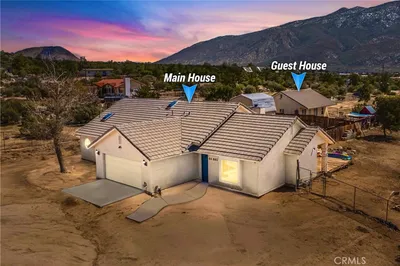 Sanctuary in the Sky: Elegant Mountain Living Above the Coachella ValleyThis multi generational home nestled in the exclusive enclave of Pinyon Crest, just 20 minutes from the world-class shopping and dining of El Paseo--''The Rodeo Drive of the Desert''--this custom mountain estate offers a rare fusion of natural beauty, architectural grace, and modern comfort. Set at 4,100 feet in the San Jacinto Mountains, enjoy temperatures 15-20 degrees cooler than the desert floor, crystal-clear air, and a sense of seclusion in a private, gated community featuring its own pure-water system and meticulously maintained roads.Commanding a pristine 2.5-acre lot bordering the Santa Rosa and San Jacinto National Monument, this 2,700+ sq. ft. residence delivers uninterrupted vistas of the Coachella Valley, Little San Bernardino Mountains, and the often snow-capped Mount Santa Rosa. Nearly every room captures the outdoors, and multiple decks extend the living experience to the open sky--where brilliant sunrises and starlit nights under the Milky Way define the rhythm of life.The main home features five bedrooms plus a dedicated office, including private guest quarters, a separate living area and entrance--ideal for hosting or multigenerational living. A gourmet kitchen anchors the home with Cambria quartz counters, premium appliances, and abundant cabinetry. The primary suite is a sanctuary of its own, complete with a generous walk-in closet and serene mountain views. Almost all bedrooms open to decks, seamlessly merging indoor and outdoor living. Outdoors, nature unfolds as art: seven cascading ponds filled with Japanese koi, accented by lotus blooms and water lilies, create a tranquil soundscape. Native pines, palms, and seasonal wildflowers flourish without effort, offering ever-changing splashes of color. Miles of nearby hiking and biking trails begin just steps from your door, inviting daily adventure in a setting where privacy and natural wonder prevail.A rare offering for those seeking elegance, serenity, and the ultimate connection to nature--yet minutes from the vibrance of the desert's most celebrated destinations.
