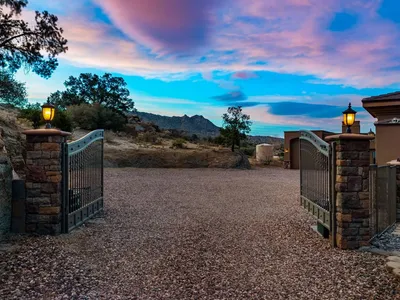 Welcome to Angels Crossing on Devils Ladder in beautiful Garner Valley. Majestic custom log home built with imported Canadian logs featuring a huge great room with vaulted ceilings and 3 custom antler chandeliers and a massive stone fireplace. The expansive windows capture the scenic mountain views while the french doors open to a large deck providing an elegant space for relaxing or entertaining. The dining room also features french doors opening to the deck. Adjacent to the dining room is a cozy library room perfect for relaxing and enjoying the stunning views.The huge gourmet kitchen is a chefs dream offering top of the line appliances, granite counters and a wine refrigerator. Featuring 3+ bedrooms including a luxurious primary suite with its own fireplace. The primary bath includes a spa tub and large walk in shower. Complete with a large walk in closet. The main level also has a separate laundry room and a guest bath, Upstairs is a loft area perfect for a family retreat or quiet office space or 4th bedroom. The lower level is designed for comfort and entertainment including 2 jack & Jill bedrooms with a full bath. a full size laundry room, with extra storage and an additional 3/4 bath. The large family room is suitable for guests with a built in Murphy bed. also featured is an entertainment center with a wet bar and refrigerator which makes this the perfect gathering space. The french doors open to the patio seamlessly blending outdoor and indoor living. The grounds amenities beyond the main home include a separate Gym with top of the line equipment (available to purchase separately) with a separate sauna for the ultimate relaxation. The equestrian facilities designed for the horse enthusiast include a newer Castlebrook barn with 4 large 12 X 16 stalls, tack room, feed room and includes an ADU /guest/caretakers quarters with a 3/4 bath. With the upstairs loft in the main home and the separate guest quarters in the barn boosts 5 sleeping areas perfect for extended family or occasional guests. Also included is a round pen and 4 separate large pastures, one is over 5 acres. Also included is a large separate fenced yard suitable for dogs etc. A Generac and Two huge water storage tanks complete this incredible estate.