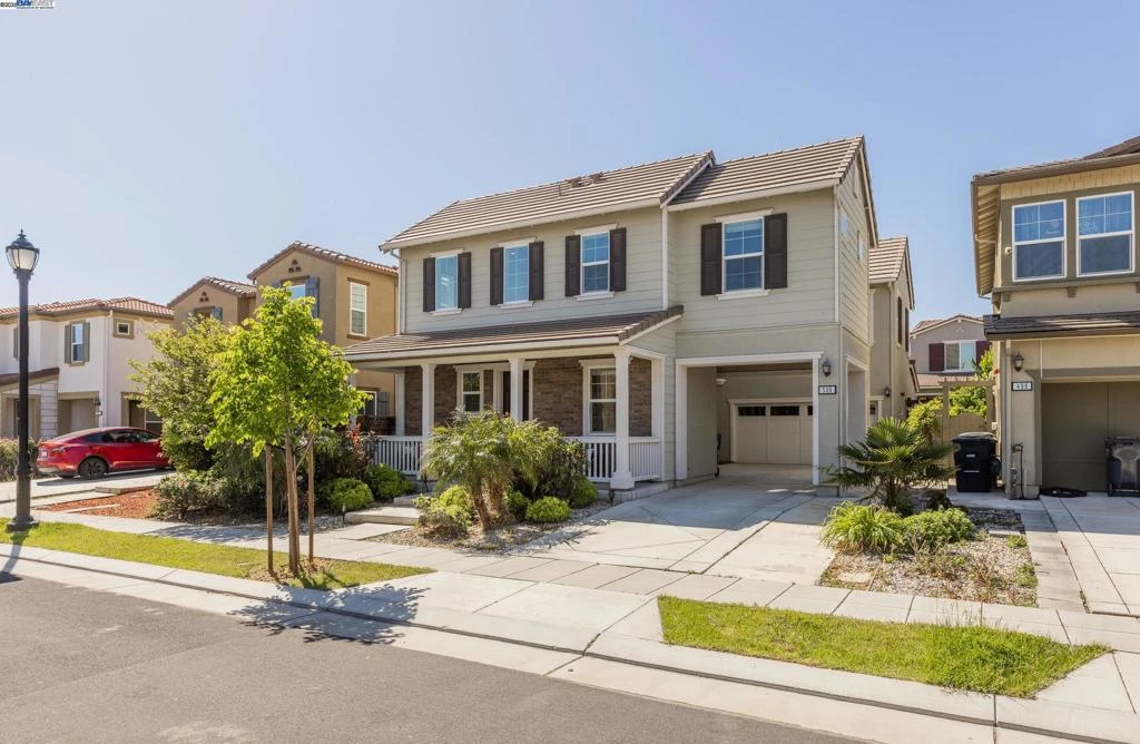 Welcome to 506 E Marcello Ave, a beautifully maintained single-family home in the heart of Mountain House, CA. Built in 2017, this two-story residence offers 5 bedrooms and 3 bathrooms across 2,217 square feet of thoughtfully designed living space. The modern kitchen features premium cabinets, a gas range, stylish backsplash, and sleek granite countertops, perfect for culinary enthusiasts. The primary suite boasts a stall shower, modern tile floors, and dual sinks, providing a luxurious retreat. With Laminate flooring throughout and a detached garage, this home combines comfort and functionality. Located near top-rated schools like Wicklund Elementary and Mountain House High School, and close to parks and shopping, it offers both convenience and a vibrant community atmosphere.