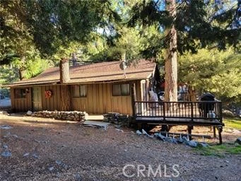 Mountain lodge cabin is located right off of Mt. Baldy Road above the ice house canyon parking lot as you travel towards the ski lifts in the Glacier track of spectacular cabins on the left side of the road with the entrance marked by orange cones Drive just a few 100 feet and pull up right in front of the cabin as there are many spacious parking spots on this almost 9000 sq ft lot complete with a stunning canopy of oak and pine trees The cabin has an incredible view from all locations of the lot. There is a generous deck facing West with the most stunning view of the sunset The main living room has exposed ceiling rafters enhancing the "rustic" look The wood burning fireplace has an efficient fireplace insert and the kitchen travertine floor has a cabin medallion! BEST OF ALL the kitchen floor and the entry room floors are heated! Slate style stone backsplash and propane stove. Small breakfast bar divides the kitchen from the living room. The bathroom has a jacuzzi tube/shower with travertine tiles The bedroom has patio style doors leading to the deck So close to all of the hiking trails, steams, water falls, ski lifts, Mt. Baldy Lodge and night moon hikes. Come on up and stay awhile as you will be pleasantly surprised by the atmosphere cool gentle breezes and fresh air of this tranquil Mt. Baldy dream house. Our fire place is warm and inviting and the main living area is very open and spacious There are lots of windows in all directions with lots of natural sun light The kitchen is just off the main living area. The bathroom is outfitted with a giant spa tub shower combination so you can relax after a day if hiking or dinner at the world famous Mt. Baldy lodge! The master bedroom is super cozy with a giant walk in closet and the cabin has the very special features of hard wood walls and lots of soft lighting. Let the outdoors in and vice versa! Truly the perfect weekend get a way or vacation at home every day. This cabin has a picture perfect location which is easy to get to during all seasons of the year! The cabin is located on Forest Service land and the lease is about $700 per year Come on up and hang out and enjoy all that we have to offer. The back yard deck is perfect for entertaining friends and family. If you are looking for an investment this cabin is currently leased so you would have built in rental income as well In 2005 the owners put on a brand new roof !Can park right at the front door lot is all level and double paned windows.