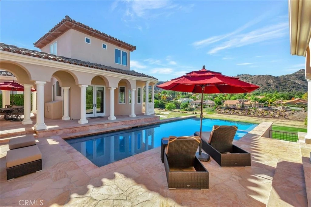 Welcome to the best of luxurious gate-guarded Bear Creek. Nestled in a prestigious, gated community, this exceptional Mediterranean-style residence offers unparalleled luxury and stunning panoramic views of the surrounding hills and award-winning Jack Nicklaus Bear Creek Golf Course. Boasting a timeless Tuscan design with a double-tile roof and Romanesque columns. This estate features 4 spacious bedrooms, 5.5 elegant bathrooms, and meticulously crafted living spaces. Oiled white oak floors, dramatic arches, and high ceilings enhance the home’s elegance throughout. The grand entry sets the tone with an impressive, curved staircase leading to a second-floor loft and two bedrooms, each with a custom bath. The main level includes a gourmet kitchen equipped with top-of-the-line Viking appliances, including a double oven, 6-burner stove, center island with popup ventilation, Gaggenau grill, wok station, and fryer. The chef’s kitchen seamlessly flows into the expansive living and dining areas, perfect for entertaining. The primary bedroom suite is a serene retreat with stunning views of the infinity pool and golf course beyond. It features a luxurious bath with a large walk-in shower, separate soaking tub, and a huge custom walk-in closet. In addition to the main residence, this estate includes a detached guest house with private bath, and a detached two-story office with a living area, fireplace, and a half bath, plus an upper-floor workout room with walk-in shower. For ultimate convenience, the property is equipped with a state-of-the-art Savant lighting system and electronic controls for media, all accessible via cell phone or panel. Entertain in style with an infinity pool with waterfall, a large Viking BBQ with vent hood, a cozy gas firepit area, and a 10-seat Italian glass-wrapped family room wet bar with a central fireplace. Enjoy your very own soundproof movie theater, complete with a 120” projection screen and custom sound system. Recent upgrades include over $50,000 in electrical enhancements, 5 HVAC systems (new in 2023), and a fully owned $60,000 solar system with 62 panels. This estate is part of a private, gate-guarded community with exceptional amenities including pickleball, hard court and clay tennis courts, a big fitness center, heated Olympic pool, and a rentable community center. Don’t miss this rare opportunity to own this breathtaking estate at a reduced price.
