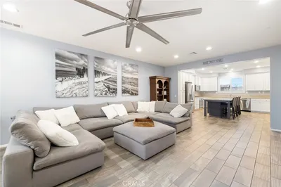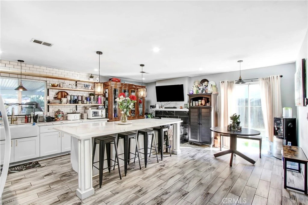 Welcome Home! Nestled in one of Murrieta's most coveted neighborhoods, this exquisite residence offers the best of family living: no HOA and access to top-tier schools, which makes this home the perfect family home. With upgraded tile flooring and abundant natural light throughout, this home is truly a bright and welcoming retreat. The heart of the home, the kitchen, has been thoughtfully updated with a spacious quartz-clad island perfect for hosting gatherings, a charming farmhouse sink, and ample counter space for creating amazing family dinners. A cozy fireplace in the kitchen adds a warm, inviting touch to the space. On the first floor, you'll find two generously sized bedrooms perfect for guests or multi-gen living for the parents, accompanied by a full bathroom with a walk-in shower for convenience, plus a separate half bath for guests. Ascend to the upper level to discover 2 good size bedrooms along with the Primary bedroom. The serene primary suite has vaulted ceilings that create an open, airy ambiance. The en-suite Primary Bathroom is a luxurious retreat, featuring beautiful sleek tile flooring, dual vanities, a spacious remodeled shower, and a beautifully crafted barn-style door for added charm and privacy. Don't miss out on this opportunity to own this gem! Schedule a showing today