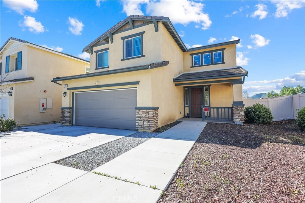 PRICE IMPROVEMENT — VA ASSUMABLE OPPORTUNITY AVAILABLE Beautiful 5-bedroom, 3-bath home built in 2020 and located in one of Murrieta’s most desirable neighborhoods. This functional floor plan features a full bedroom and full bathroom downstairs, ideal for guests, multi-generational living, or a home office. The open-concept layout connects the kitchen, dining, and living spaces, creating a comfortable environment for everyday living and entertaining. Upstairs includes spacious secondary bedrooms, a convenient laundry room, and a primary suite with scenic views and a double-vanity bathroom. The backyard is designed for enjoyment with a full-length patio cover spanning nearly the entire backyard, complete with recessed lighting and ceiling fan — perfect for outdoor gatherings year-round. Additional features include leased solar, gutters, a 2-car garage, and close proximity to the I-15 freeway. Located in a highly rated school district with Murrieta Valley High School within walking distance. Seller offering qualified Veterans the opportunity to assume the current VA loan at a favorable interest rate. Schedule your private showing today.