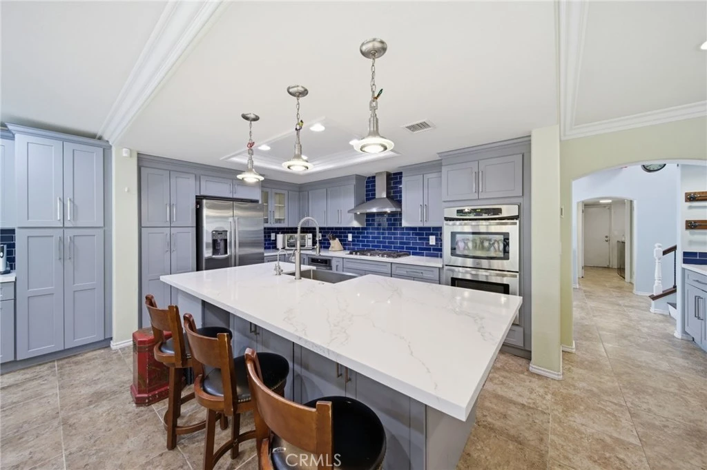 *If I were to build a 5-bedroom 3 bath home from the ground up, this is everything I would include, and it’s already done here for you* Welcome to this beautifully upgraded 2882 Sq Ft Murrieta home where thoughtful design, functionality, and comfort come together. From the moment you arrive, you’re greeted with strong curb appeal, a tile roof, expanded driveway with potential RV parking, and a private courtyard entry with a charming fountain. Inside, enjoy soaring ceilings with recessed lighting, skylight accents, and an open layout filled with natural light. The living and dining areas feature crown molding, a cozy fireplace, new vinyl windows, and upgraded window shades, creating a warm yet elevated feel. The remodeled kitchen is the heart of the home, offering spacious custom cabinetry, soft-close drawers, gorgeous quartz countertops, a dedicated coffee station, recessed lighting, stainless steel appliances, double ovens, reverse osmosis filtration, and a large center island perfect for entertaining. Crown molding flows throughout the home, adding a refined finish. The family room with fireplace opens seamlessly to the backyard, ideal for everyday living. Upstairs, the spacious primary suite offers a relaxing retreat with additional built-in closets. The fully remodeled bathroom features stunning tile work, quartz finishes, a rain shower head, dual vanities, and updated fixtures. A catwalk hallway, leads to three additional spacious bedrooms and a full bath with dual sinks and a tub/shower combination. All rooms are equipped with Cat 5 wiring. Major upgrades include 24 solar panels with battery backup, 220V for two EV hookups, whole house water softener, recessed lighting throughout, new vinyl windows and sliding doors, wood shutters, whole house fan, and two quiet LiftMaster garage door openers. Step outside to a private backyard featuring a covered patio with fans, custom covered BBQ area, and a 6-person covered jacuzzi that will remain. Several mature fruit trees add charm and function to the space. Additional highlights include a 3-car garage, NO HOA, and true pride of ownership. Conveniently located within walking distance to schools, shopping, and a park across the street where you can enjoy outdoor activities and 4th of July fireworks. Just minutes from the freeway. Move-in ready and designed for modern living!!!