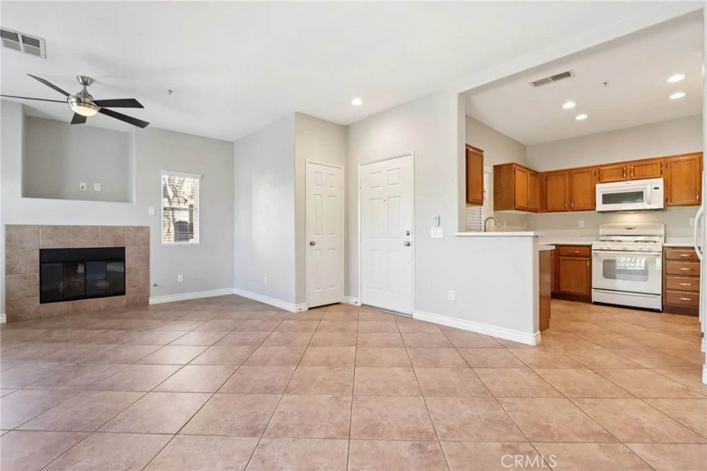 Location, Location, Location! Welcome to this beautifully upgraded turnkey condo in the highly sought-after gated Verona community, where comfort, convenience, and location come together perfectly. Situated on the second floor with no neighbors above, this home offers added privacy and relaxed living. Ideally located directly across from the community pool and fitness center, you’ll enjoy resort-style amenities just steps from your front door. Inside, you’ll find a spacious kitchen with matching appliances, seamlessly flowing into the dining and living areas. The home features stylish tile flooring and upgraded bedroom flooring, creating a clean, modern feel. The living room fireplace adds warmth and charm, while the adjacent dining area sits beside a sliding glass door that fills the space with natural light. Step outside to your private patio, where you can unwind and take in beautiful views of the mountains and community—perfect for morning coffee or evening relaxation. This well-designed layout includes 2 bedrooms and 2 bathrooms, offering both comfort and functionality. Additional highlights include a 1-car detached garage, ample nearby parking, and the convenience of a refrigerator, washer, and dryer included with the sale. Residents of Verona enjoy access to a sparkling pool, relaxing jacuzzi, and fully equipped fitness center, all within a secure gated setting. This is a rare opportunity to own a move-in-ready home in an unbeatable location—don’t miss it!