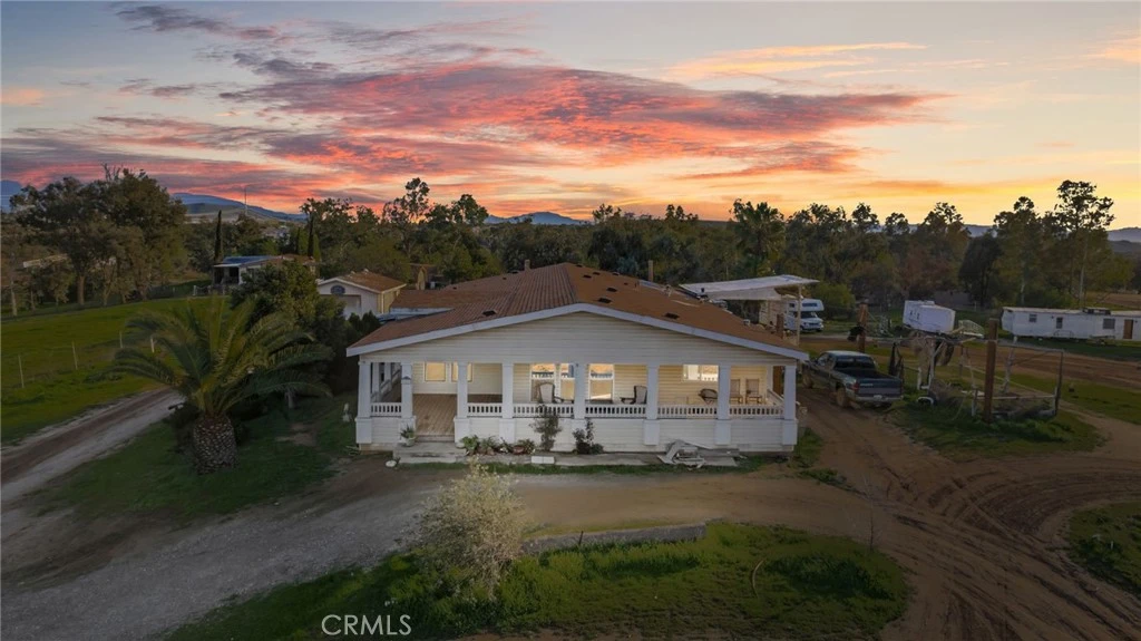 Welcome to this rare hilltop property set on 2.6 usable acres atop a scenic Murrieta hillside, this 2002 manufactured home offers expansive 360-degree panoramic views and space rarely found at this price point. Located in a highly desirable rural enclave, the property provides a balance of open land living while remaining just minutes from major highways, shopping, dining, hospitals, and Murrieta’s well-regarded schools. The home features 3 large bedrooms, 1 large office with built-ins that can be used as a 4th bedroom, and 2 bathrooms, including a generous primary suite, along with an open living and kitchen layout that takes full advantage of the surrounding views. A spacious deck creates an ideal outdoor living area for entertaining, relaxing, or simply enjoying the natural setting. Serviced by private well and septic, this property offers lower utility dependency and strong appeal for buyers seeking self-sufficient or long-term investment potential. While the home could use cosmetic improvements, it offers a solid foundation for customization, rental income, or future expansion. Accessed via a dirt road, the location enhances privacy without sacrificing convenience. With room for a small ranch, hobby farm, additional structures, or multi-generational use, this is one of the most affordable opportunities to own acreage in Murrieta. Ideal for buyers seeking land, views, and upside potential in a proven, high-demand area.