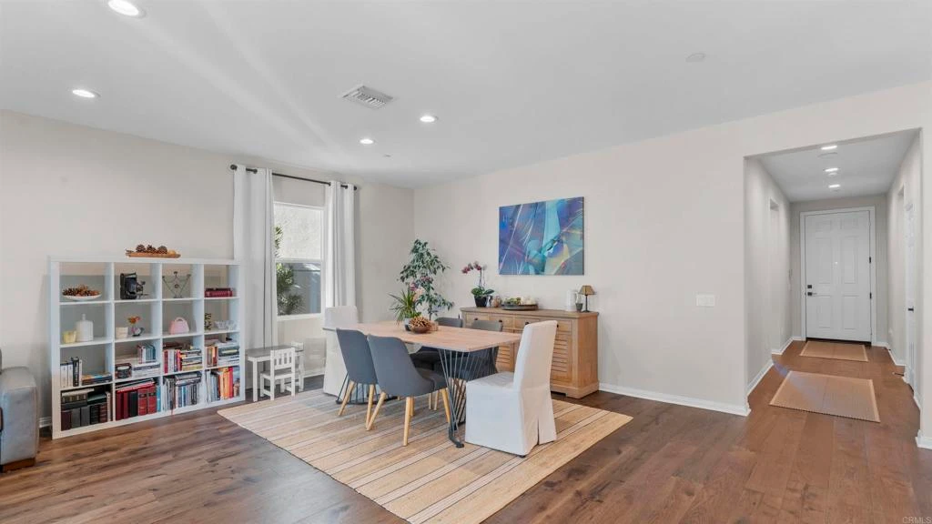 Welcome to this stunning single-story residence built in 2022 and purchased as the original model home showcasing approximately $80,000 in premium builder upgrades and additional owner enhancements. Designed with a modern open-concept layout, this 4 bedroom home offers expansive living spaces filled with natural light and enhanced by recessed lighting throughout the entire home, a signature model-home upgrade that elevates the ambiance in every room. The chef-inspired kitchen features quartz countertops, upgraded cabinetry and fixtures, recessed lighting, and upgraded tile flooring, with seamless flow into the dining and living areas, with the hardwood floor, creating the perfect setting for entertaining or everyday comfort. Quartz finishes continue into the bathrooms, and upgraded tile flooring extends through all bathrooms, delivering a cohesive, upscale look and feel throughout. This smart home includes a smart thermostat, automated blinds in the primary bedroom, integrated surround sound system, and fully paid-off solar panels for energy efficiency and long-term savings. The home also includes a dedicated laundry room with a convenient sink. Designed with functionality in mind, the home provides generous storage space, featuring two walk-in closets, a dedicated pantry, and installed garage shelving for added organization. The professionally finished two-car garage includes epoxy flooring and an installed EV charger. The driveway accommodates three additional parking spaces. Step outside to a true outdoor extension of the home. A full-width insulated patio cover with recessed lighting and ceiling fan, creating a year-round outdoor living space ideal for hosting or relaxing in a peaceful setting. It has a remaining KB Home builder warranty, this property offers the benefits of modern construction, premium upgrades, and move-in-ready convenience.