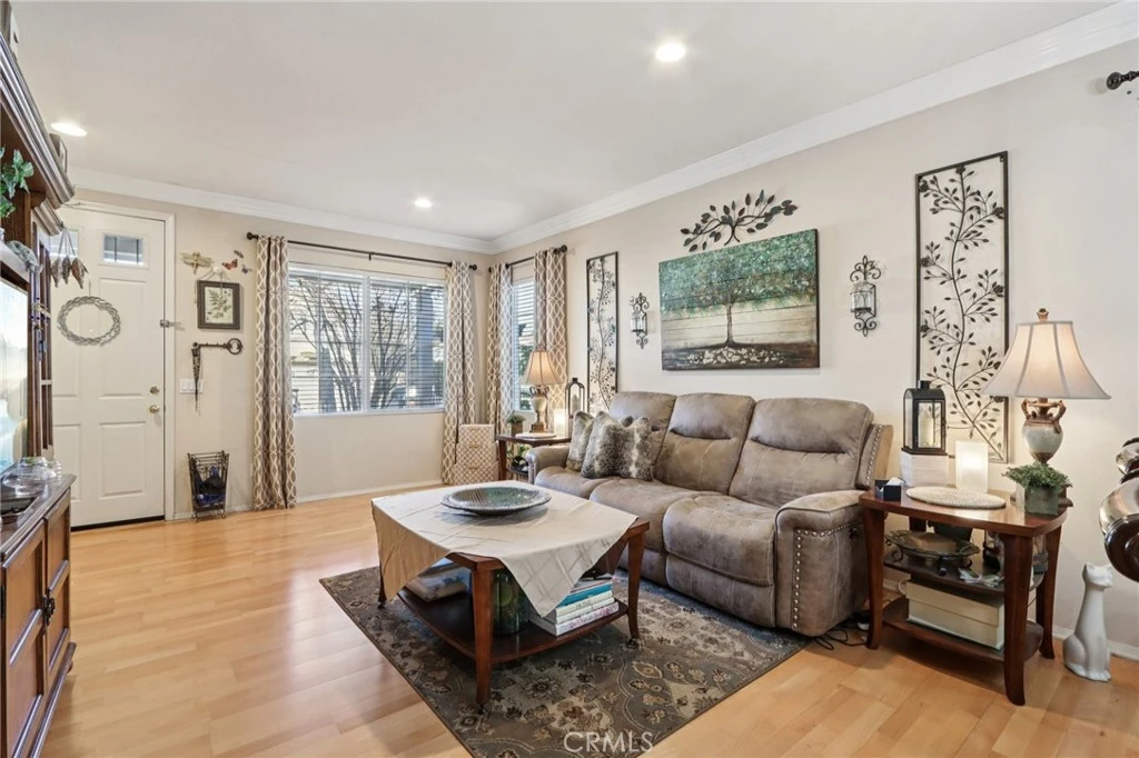Welcome home to charming curb appeal that instantly makes you smile. From the white picket fence and mature landscaping to the warm, inviting exterior, this home makes a beautiful first impression the moment you arrive. Nestled on a quiet cul-de-sac in the highly sought-after Mapleton community, this beautifully maintained home offers the perfect blend of space, comfort, and everyday functionality with no HOA. Inside, you’ll find four generously sized bedrooms and two full bathrooms, along with a thoughtfully designed layout ideal for both daily living and entertaining. The spacious kitchen features an island with bar seating, abundant cabinet and counter space, and opens seamlessly to the inviting family room with media niches and a cozy fireplace. A formal living and dining room provide the perfect setting for hosting family and friends. The home also includes solar, a built-in office/ hallway workspace, and beautiful wood and Pergo flooring throughout, complemented by elegant crown molding. Step outside to enjoy a drought-resistant front yard and a beautifully landscaped backyard complete with multiple fruit-bearing trees, including orange and peach trees, along with an Alumawood patio cover — perfect for relaxing or entertaining year-round. A three-car garage adds extra convenience and storage. Located just steps from nearby walking trails and parks, and only minutes from shopping, dining, and everyday essentials, including Costco, Target, and Starbucks, this home also offers easy access to the 215 freeway. This charming cul-de-sac home offers comfort, space, and an unbeatable location, a wonderful place to call home.