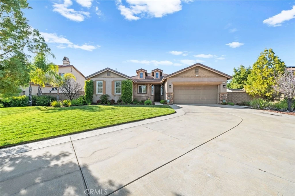 Welcome to this stunning single-story 4-bedroom, 2-bathroom home located at the end of a quiet cul-de-sac in the highly sought-after Spencer’s Crossing community in Murrieta! With 2,617 square feet of beautifully designed living space, this home offers an open floor plan perfect for modern living. Step inside to find a spacious living and dining area that flows effortlessly into the chef’s kitchen, complete with granite countertops, stainless steel appliances, a black gas range, ample cabinet space, and a large island with bar seating. The kitchen opens to the family room, featuring a cozy fireplace and built-in media niche—perfect for movie nights and gatherings! The primary suite, tucked away in the back of the home for added privacy, boasts a dual-sink vanity, a luxurious soaking tub, a separate glass-enclosed shower, and an oversized walk-in closet with two entry doors. Toward the front of the home, you’ll find three spacious secondary bedrooms, a well-appointed bathroom with a dual-sink vanity, and a built-in desk—perfect for a homework station, home office, or creative workspace. Throughout the home, you’ll love the elegant plantation shutters that add charm and sophistication. Step outside to the beautifully landscaped backyard, where a covered patio with two ceiling fans provides the perfect setting for outdoor entertaining. The side yard offers even more space to enjoy, complete with an additional patio, pergola, and a flourishing lemon tree and orange tree. Located in the master-planned Spencer’s Crossing community, residents enjoy resort-style amenities including two sparkling pools, a spa, a fitness center, basketball courts, playgrounds, picnic areas, scenic walking trails, and a clubhouse with a game room, lounge, and movie theater. Nestled in the heart of Murrieta, this home offers the best of suburban living with easy access to top-rated schools, shopping, dining, and major freeways. With its exceptional location, stunning design, and access to incredible community amenities, this home is an opportunity you don’t want to miss!
