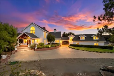 Exquisite Custom Estate with Panoramic Views in Prestigious La Cresta. Discover one of the most extraordinary homes currently available in Murrieta, offering over 6,400 sq ft of refined luxury on more than 5 acres, nestled in the highly coveted La Cresta community. Boasting 4 spacious bedrooms and 4.5 bathrooms, this exceptional property delivers the perfect blend of elegance, comfort, and functionality. Enter through a private, gated driveway to a grand double-door entrance, where you're welcomed by soaring ceilings and a dramatic foyer with rich finishes. The open-concept layout is designed to highlight the sweeping 180-degree views of the Murrieta and Temecula Valleys, visible from nearly every room in the home. Walls of windows and glass doors seamlessly connect the indoor living space to the stunning backyard oasis. Step outside to experience true resort-style living with a sparkling pool and spa, built-in custom BBQ island, and a private guest cabana complete with its own bathroom and shower, ideal for hosting or extended stays. Entertain, relax, and soak in all this property offers. The gourmet chef’s kitchen is a culinary masterpiece, complete with high-end stainless steel appliances, granite countertops, custom cabinetry, a large center island with seating, and walk-in pantry. Entertain with ease in the formal living and dining rooms, breakfast nook, and expansive family room, all showcasing incredible views. A fully-equipped custom bar, complete with sink and mini fridge, anchors the impressive game room featuring a billiards table, shuffleboard, and a temperature-controlled wine cellar. Downstairs includes two private ensuite bedrooms, one is currently utilized as a home office with a separate entrance. Upstairs, two additional ensuite bedrooms with walk-in closets. The luxurious primary suite is a true retreat- enjoy sunrises from your private balcony, unwind in the jetted tub, sauna, or massive walk-in shower, and enjoy the expansive walk-in closet with built-in cabinetry and an adjacent private gym. Additional features include an attached 4-car garage with built-in storage, central vacuum system, water softener, security system with cameras, and a solar power system. Set within one of Murrieta’s most sought-after communities, this property offers tranquility, privacy, and easy access to top-rated schools, shopping, dining, and the renowned Temecula wine country. This one-of-a-kind estate is a rare opportunity-schedule your private tour today!