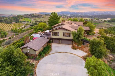 Welcome to 38565 Celine Cove where you get TWO homes on a 5 acre lot – A Private La Cresta Estate with Exceptional Craftsmanship! Situated just minutes from the front entry of La Cresta. This exquisite 5-acre estate offers the perfect blend of luxury, functionality, and privacy. Spanning approximately 6,800 square feet, the main residence is a testament to quality construction and thoughtful design. Soaring 12-foot ceilings, crown molding, and commercial-grade glass doors define the expansive interiors, which include 4 spacious bedrooms, 2 fireplaces, and an executive office ideal for working from home. The chef’s kitchen is equipped with a Bosch induction cooktop, KitchenAid refrigerator, and reverse osmosis system, making it as functional as it is elegant. The home also boasts 4 air conditioning units, an enclosed sunroom with A/C, and a paid solar system with battery backup for energy efficiency. Step outside into a backyard oasis featuring a pebble tech saltwater pool, outdoor fire pit, and lush landscaping framed by mature trees—including lemon, orange, pomegranate, pear, and apple. You get TWO 3-car garages, AS WELL AS one enclosed RV parking with generous storage for your oversized collectibles. Let's not forget about the 2,400 square foot guest house, complete with soaring vaulted ceilings, an enclosed sunroom, 2 large bedrooms, a full kitchen with granite counters, and an oversized garage with an enclosed RV bay—all constructed to the same exacting standards as the main home. This private estate features an electric gated entry, offering security and seclusion just 10 minutes from top-rated schools, the freeway, and shopping. 38565 Celine Cove is more than a home—it’s a sanctuary of comfort, sophistication, and California country living at its finest.