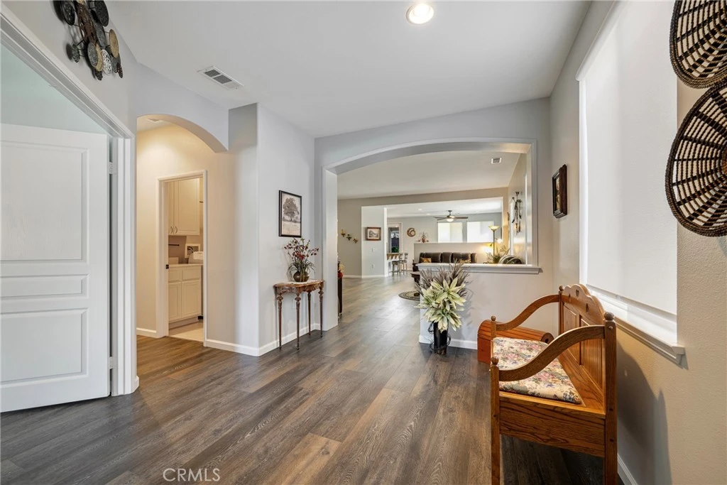 Welcome to Four Seasons, a premier 55+ resort-style community! If you’re looking for perfection, this is the house for you. This popular floor plan - Craftsman 2, features 3 bedrooms (one is currently being used as an office), 2 baths and a sizeable living room. This home is a showstopper and has been beautifully maintained down to the last detail. With newer Luxury Vinyl Plank flooring throughout, newer electric window blinds, freshly painted throughout, newer base boards throughout, beautiful shelving in front bedroom, newer Alumawood patio cover, new garage door opener, new Samsung washer, the list goes on. The kitchen offers granite counters, tile flooring, pull-out drawers in kitchen and bathrooms, all appliances have been updated. Kitchen offers an open concept looking out onto the family room with a separate formal dining room that connects seamlessly to the kitchen. The master suite features jetted corner tub, two closets, dual sinks and separate walk-in shower. Enjoy the spacious indoor laundry room which provides plenty of storage cabinets. The backyard offers amazingly low maintenance complete with solid Alumawood patio cover and fan w/ light, stamped concrete patio, artificial turf, beautiful yet low-maintenance landscaping with drip system out back and sprinklers in front. This peaceful setting creates the perfect place for relaxation and a cup of java. Save big on your electric bill with solar panels that offer a low monthly lease (under $90/mo). This is truly a turn-key home! The Lodge Clubhouse offers a 10-acre recreational facility that includes a wide variety of amenities from art classes to yoga, bridge, billiards, and more. Outdoor amenities include a large pool, spa, BBQ/picnic area, putting green, golf practice area, horseshoes, shuffleboard, bocce ball, basketball, and lighted tennis courts, pickleball, and badminton. Indoors, you can take advantage of the gym, library, billiards and card room, craft room, and a large ballroom for events. Nearby, you'll find a major shopping mall with excellent restaurants and movie theaters. Stroll through Old Town Temecula, with its charming downtown as well as award-winning wineries, all just a few miles away. Come and discover the active, enjoyable lifestyle waiting for you at Four Seasons Murrieta!