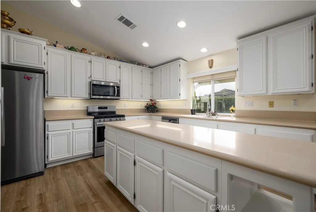Welcome to 39559 Stags Leap Dr in Four Seasons Murrieta. This inviting Craftsman 3 floor plan offers 3 bedrooms, 2 bathrooms, and 2,095 sq ft of comfortable single-story living on a spacious corner lot. From the moment you arrive, the home shows pride of ownership with well-kept landscaping and a welcoming entry. Inside, you’ll find Luxury Vinyl Plank flooring throughout with no carpet, creating a clean and cohesive feel from room to room. The kitchen is bright and functional with white cabinetry, generous storage, stainless steel appliances, a center island, and an easy connection to the breakfast nook and family room. There is also a separate dining area, giving you flexibility for everyday living or entertaining. Plantation shutters add style throughout the home, while French doors off the family room and a slider from the primary bedroom bring in natural light and easy access to the backyard. The primary suite is thoughtfully laid out with room for a sitting area, dual sinks, a soaking tub, a separate walk-in shower, and ample closet space. Outside, the backyard offers a great setting to relax and enjoy the outdoors with fruit trees, a shed, and a tiered Alumawood patio cover. Another added benefit is the recently replaced air conditioner. Located within Four Seasons Murrieta, this home also offers access to the community amenities available through the HOA. Residents of Four Seasons Murrieta enjoy a vibrant community with a variety of clubs and activities, from art classes to yoga, bridge, billiards, and more. Outdoor amenities include a large pool, spa, BBQ area, putting green, golf practice area, horseshoes, shuffleboard, bocce ball, basketball, and lighted courts for tennis, pickleball, and badminton. Indoors, you can take advantage of the gym, library, billiards and card room, craft room, and a large ballroom for events. Nearby, you'll find a major shopping mall with excellent restaurants and movie theaters. Old Town Temecula, with its charming downtown and award-winning wineries, is just a few miles away. Come and discover the active, enjoyable lifestyle waiting for you at Four Seasons Murrieta!